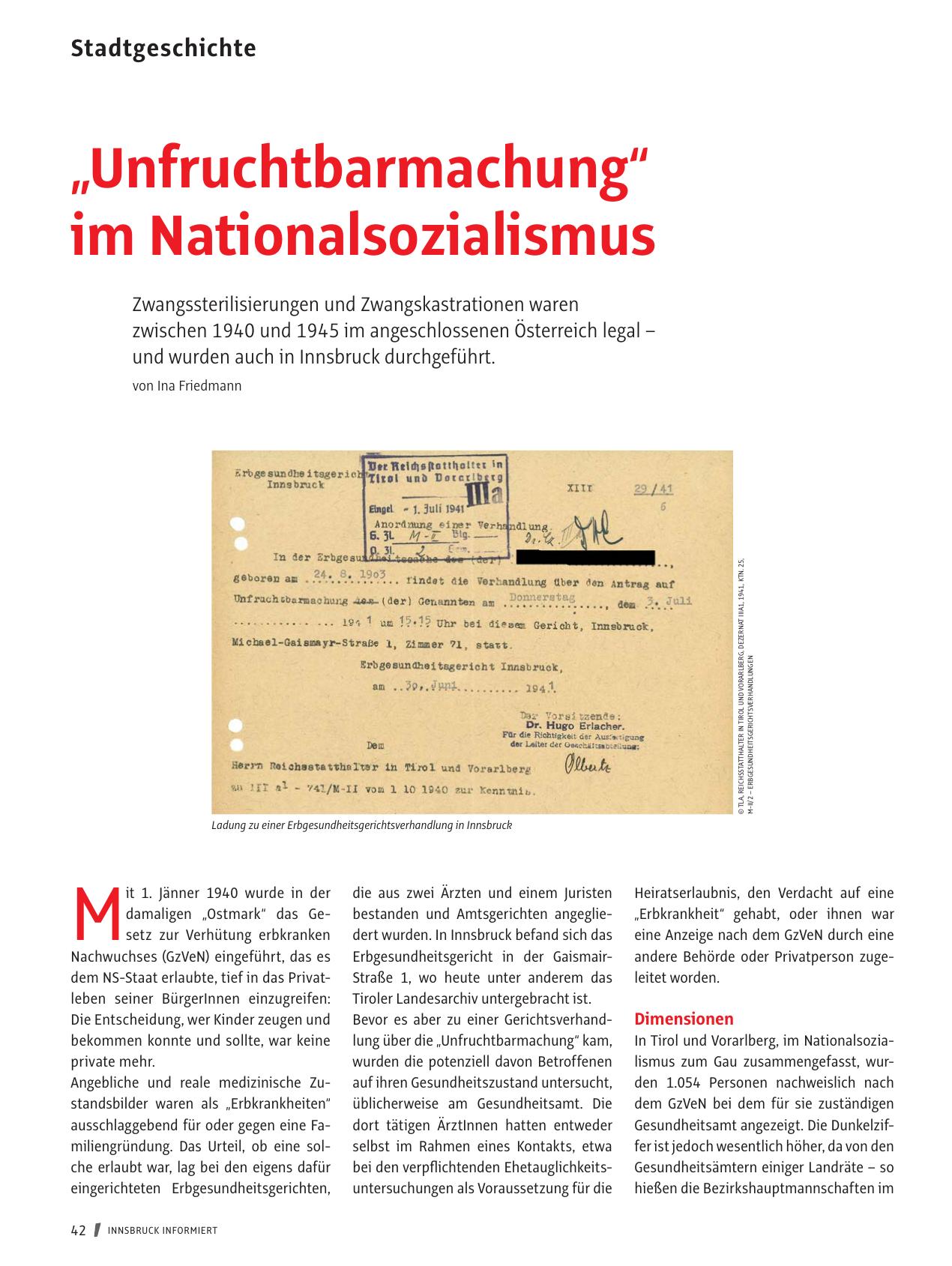 Ladung zu einer Erbgesundheitsgerichtsverhandlung in Innsbruck