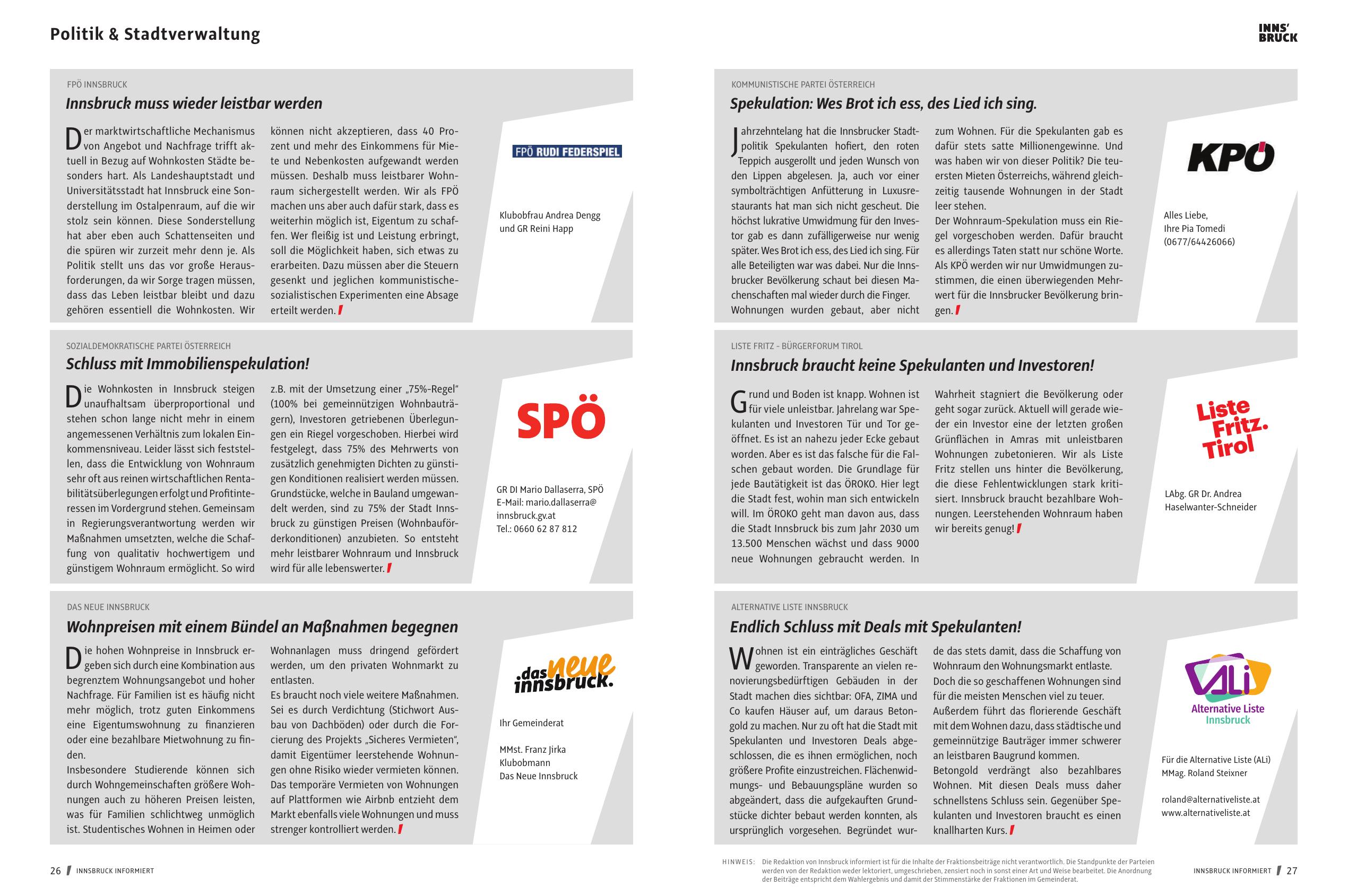 H I N W EI S : Die Redaktion von Innsbruck informiert ist für die Inhalte der Fraktionsbeiträge nicht verantwortlich. Die Standpunkte der Parteien