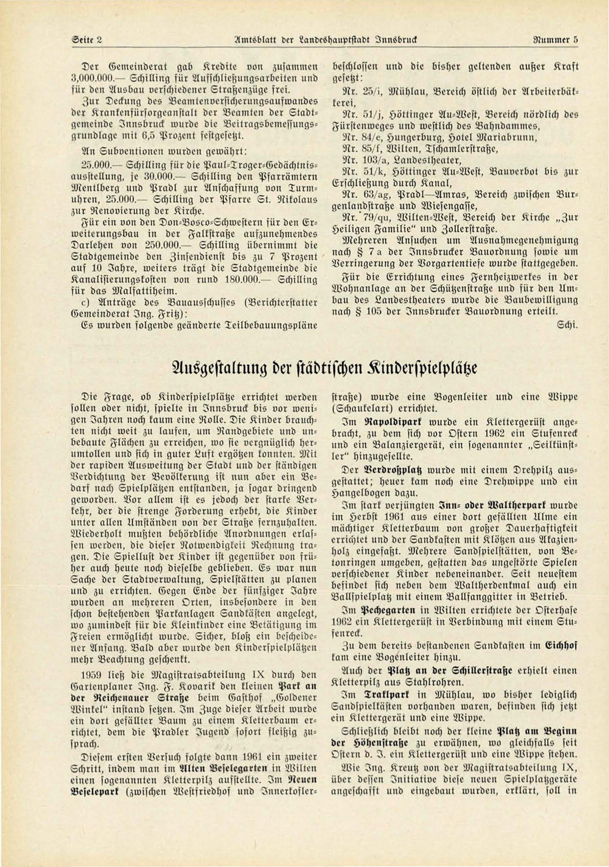 sollen oder nicht, spielte in Innsbruck bis vor wenigen Iahren noch kaum cine Nolle. Die Kinder brauchten nicht weit zu laufen, um Randgebiete und unbebaute Flächen zu erreichen, wo sie vergnüglich herumtollen und sich in guter Luft ergötzen tonnten. M i t
