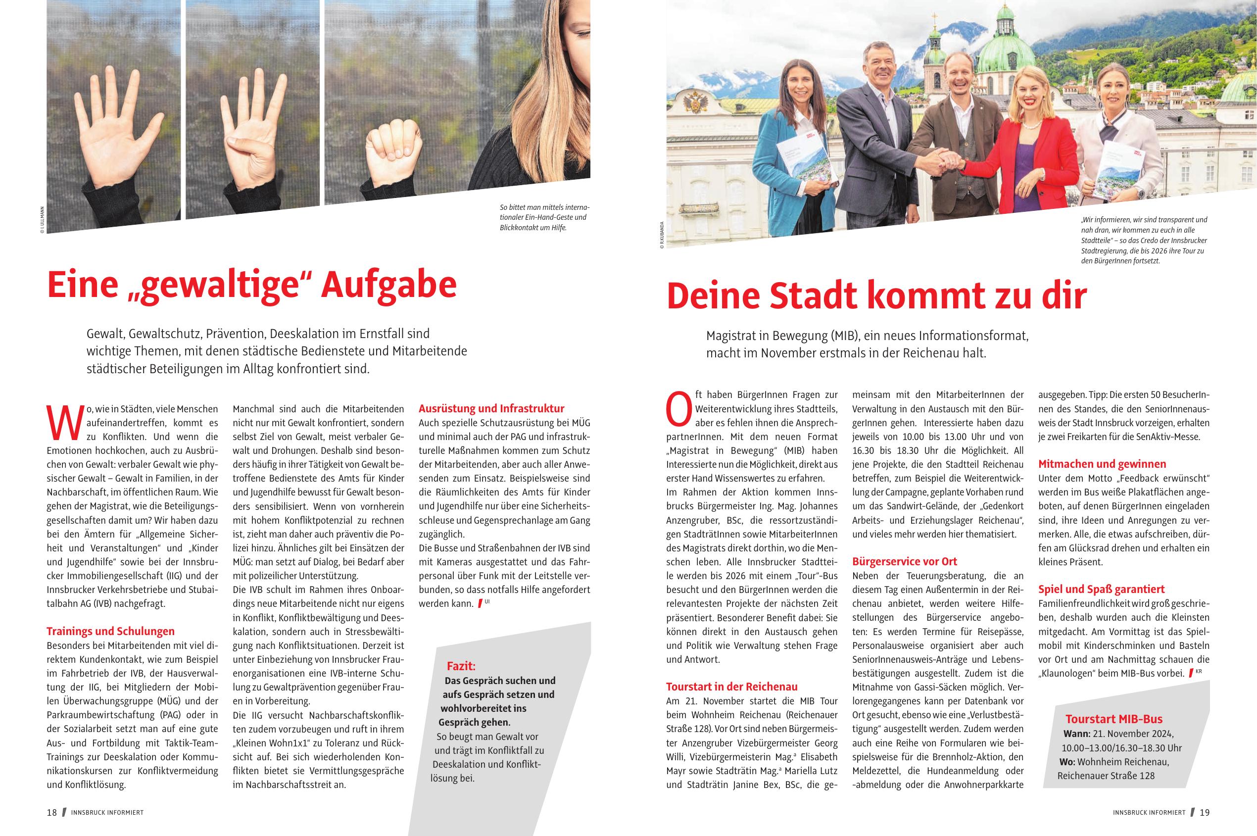 im Fahrbetrieb der IVB, der Hausverwaltung der IIG, bei Mitgliedern der Mobilen Überwachungsgruppe (MÜG) und der