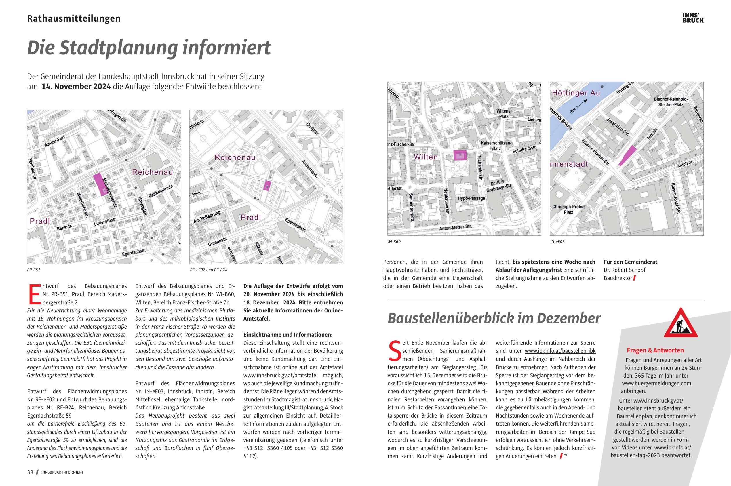 schaffen. Das mit dem Innsbrucker Gestal- Diese Einschaltung stellt eine rechtsuntungsbeirat abgestimmte Projekt sieht vor, verbindliche Information der Bevölkerung
