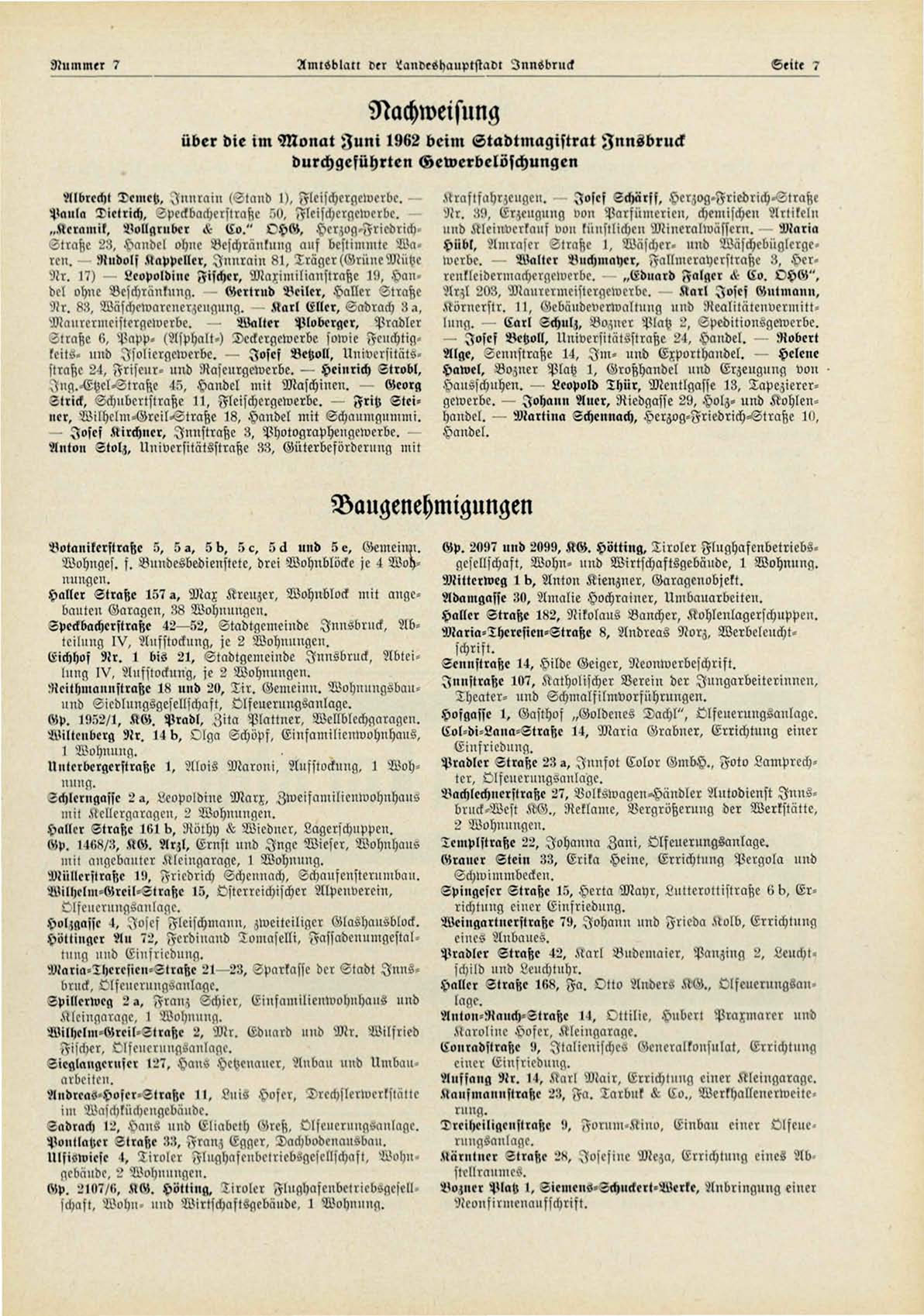 über die lm Monat Hunt 1W2 veim Stadtlnaqistrat Innsbruck