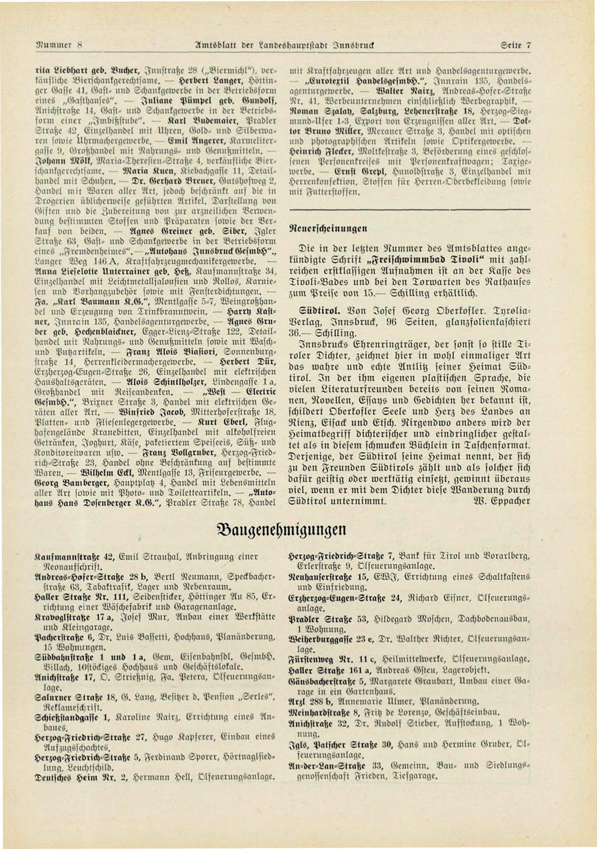 ^ a . „ K a r l Vaumau» K.G.", Äientlgasse 5,-7, Weiuqroschandcl nud Erzcussunq von Trinlbranntwcin. — Harry .ttastucr, Inurbi in U!.">, Handelsaqcnturqcluerlic. - ^ Agues Grubcr l ^ Herbert Diir,
