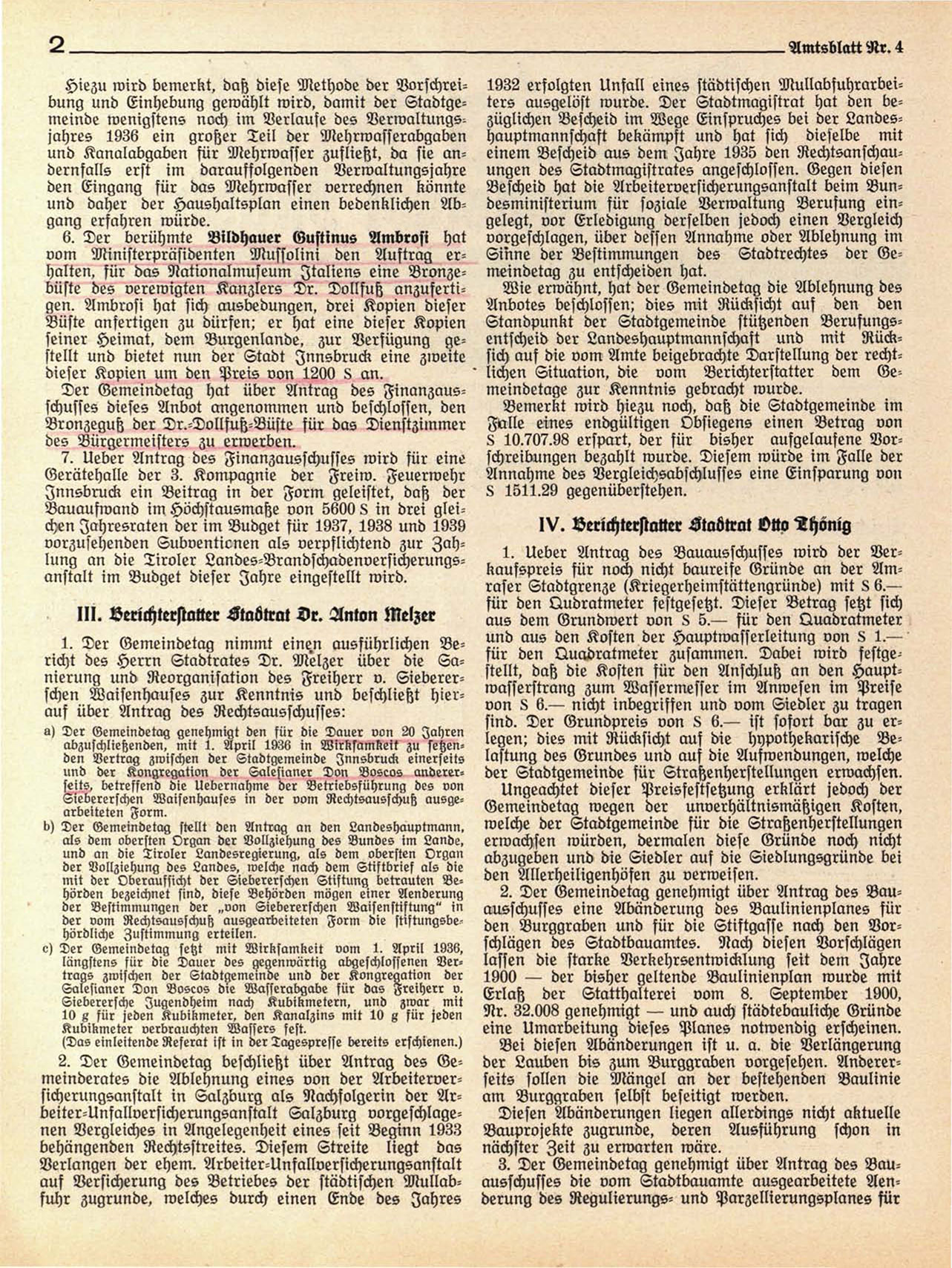 III. Berichterstatter Staötrat Dr. Anton Melzer