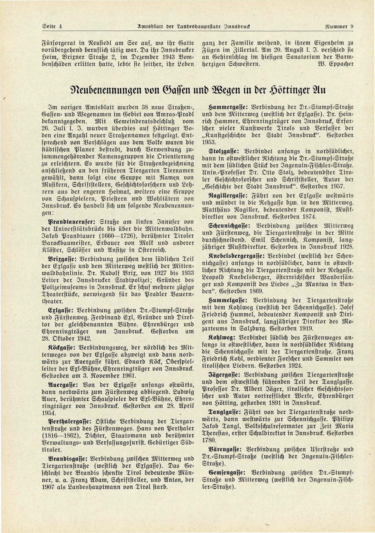 Innsbruck. Es handelt sich um folgende Neubenennungcn!