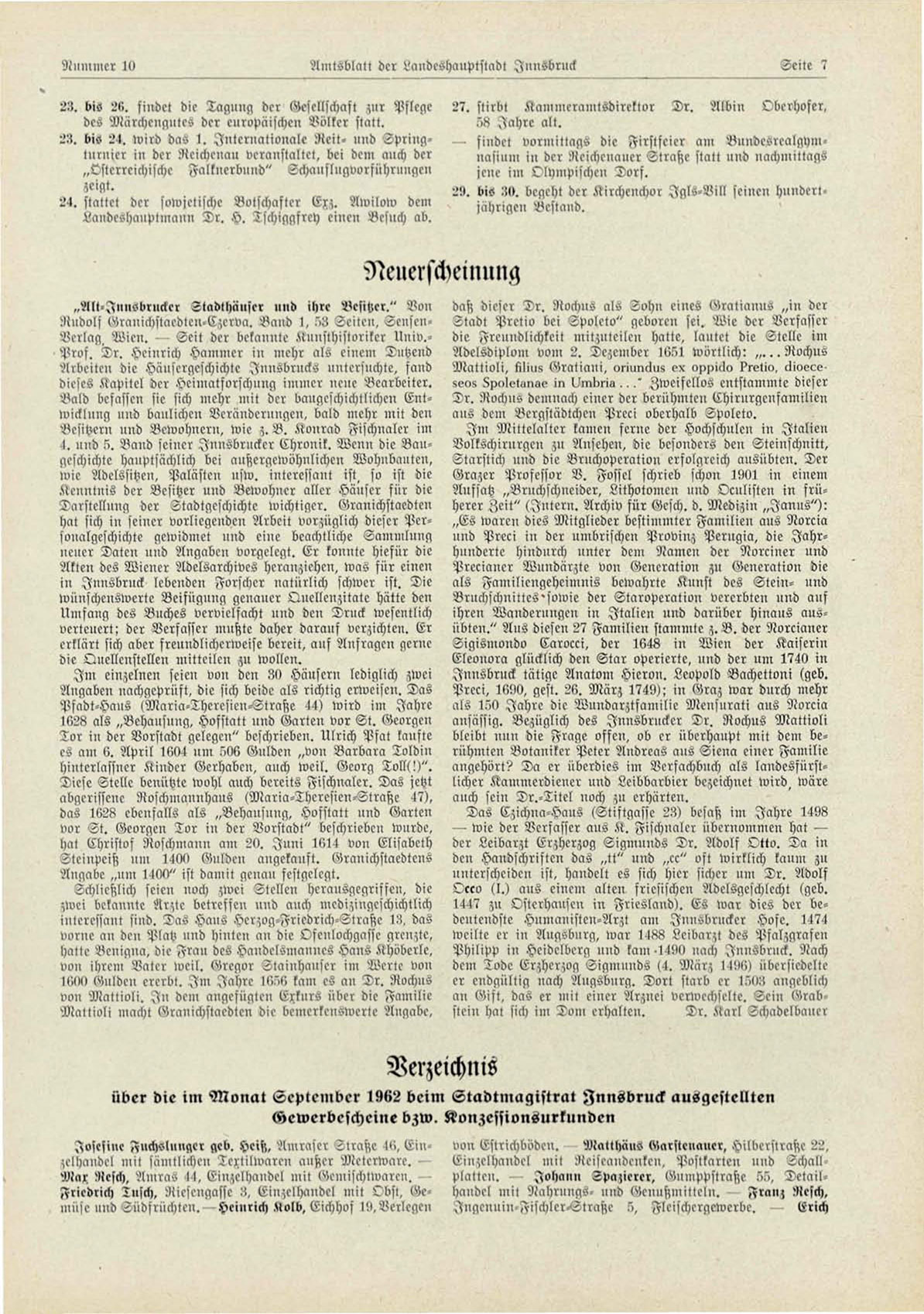 ausässig. Bezüglich des Innsbrucker D r . Rochus M a t t i o l i