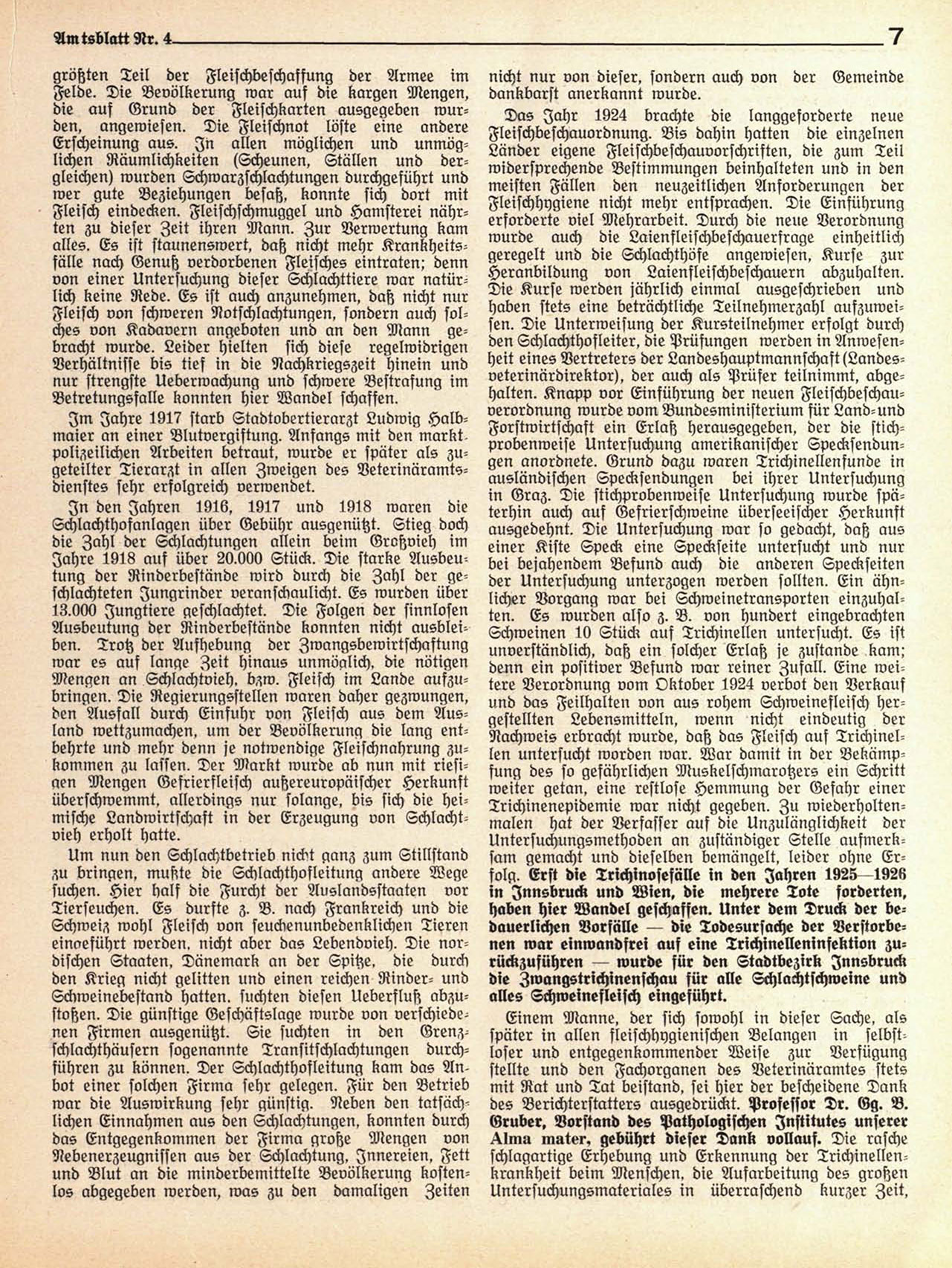 haben hier Wandel geschaffen. Unter dem Druck der bedauerlichen Vorfälle — die Todesursache der Verstorbenen war einwandfrei auf eine Trichinelleninfektion zurückzuführen — wurde für den Stadtbezirk Innsbruck