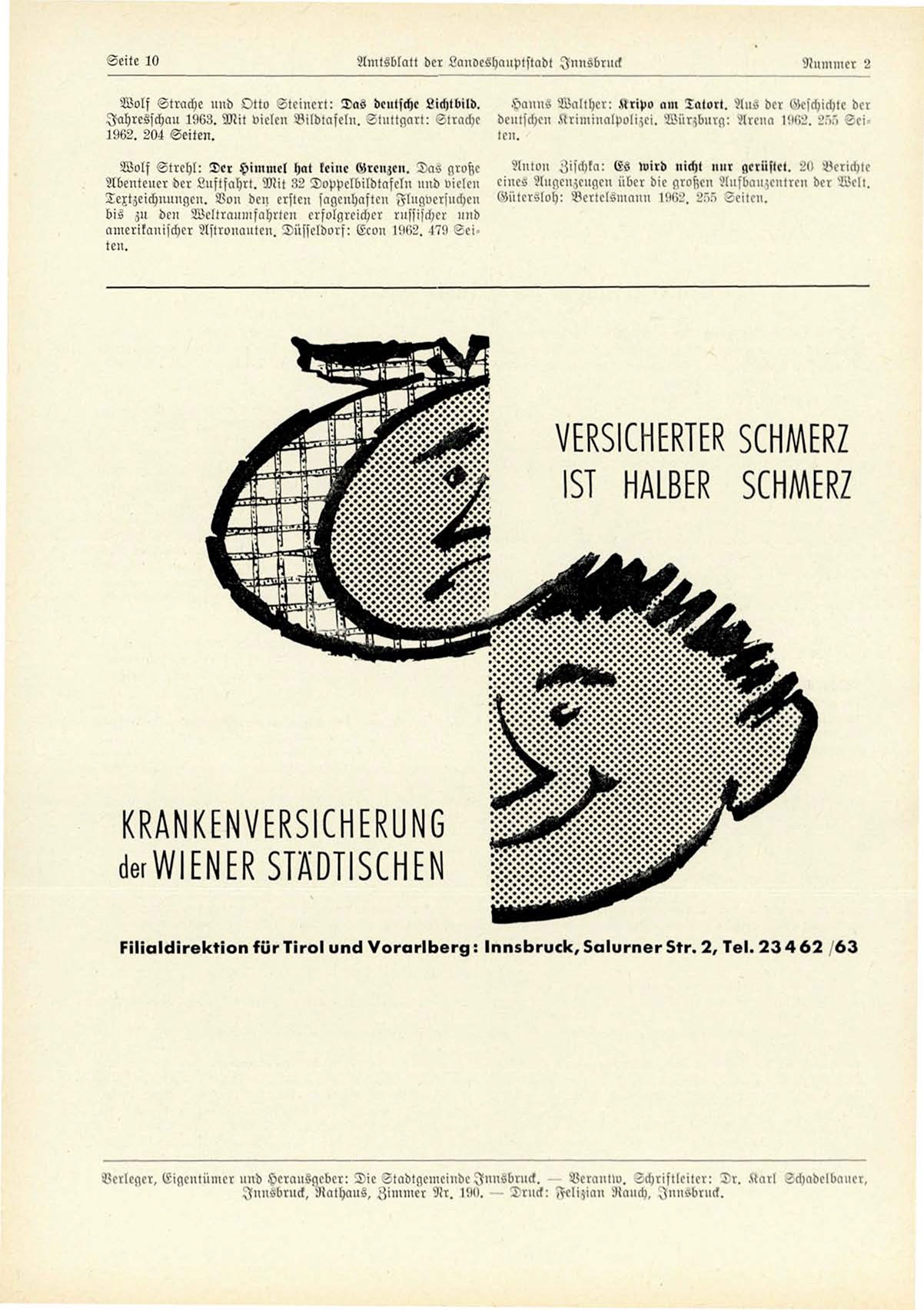 Eigentümer nnd Herausgeber: Die Stadtgemcindc Innsbruck.
