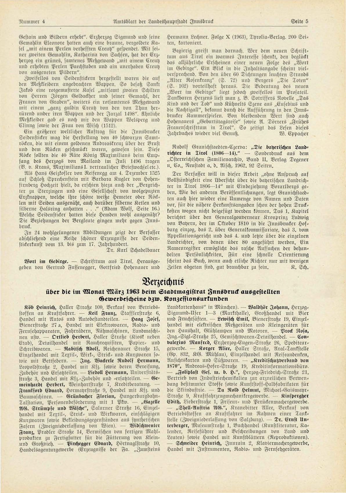 über die im Monat März 1963 beim Stadtmagistrat Innsbruck ausgestellten