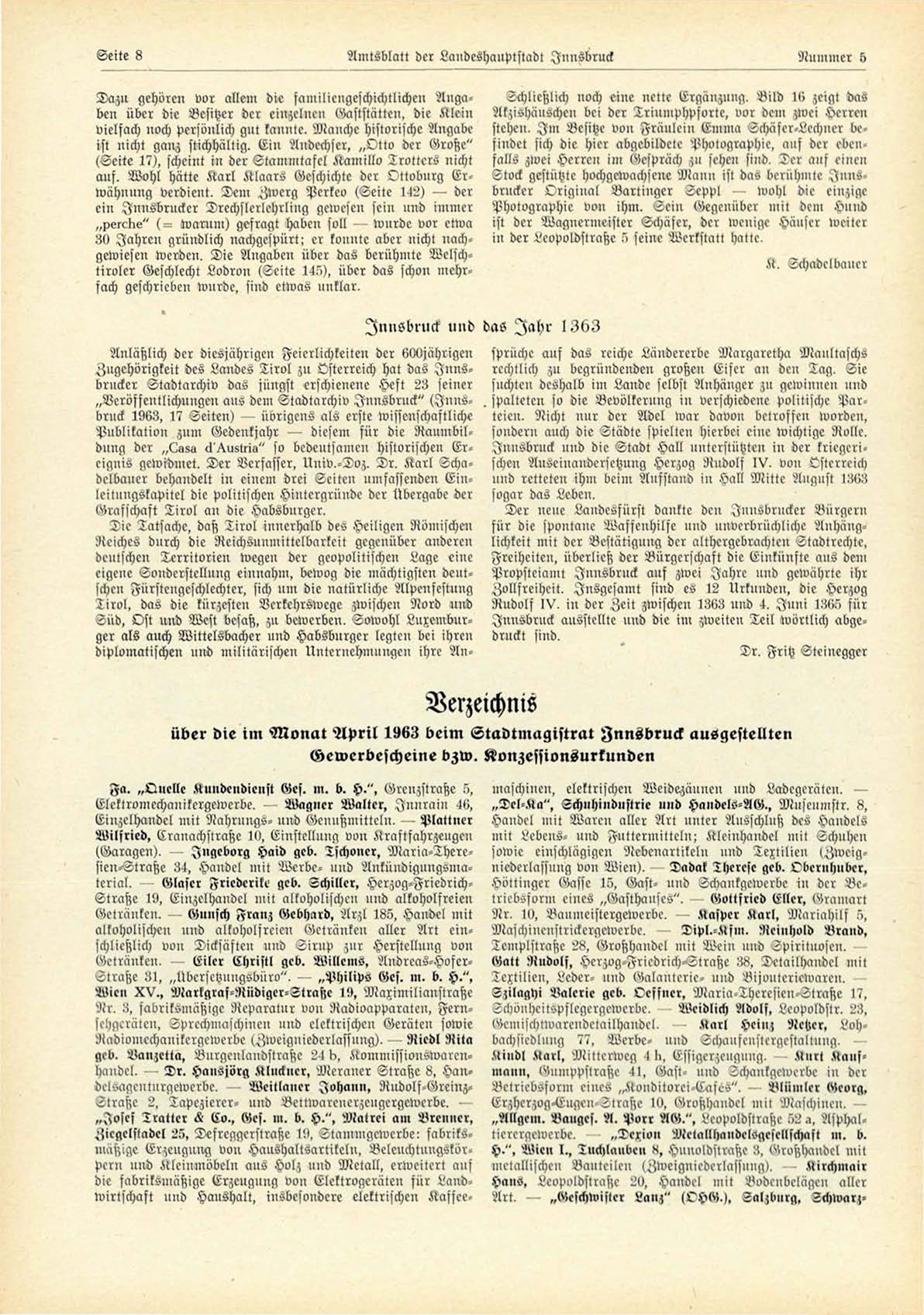 über die im Monat A p r i l 1963 beim Stadtmagistrat Innsbruck ausgestellten