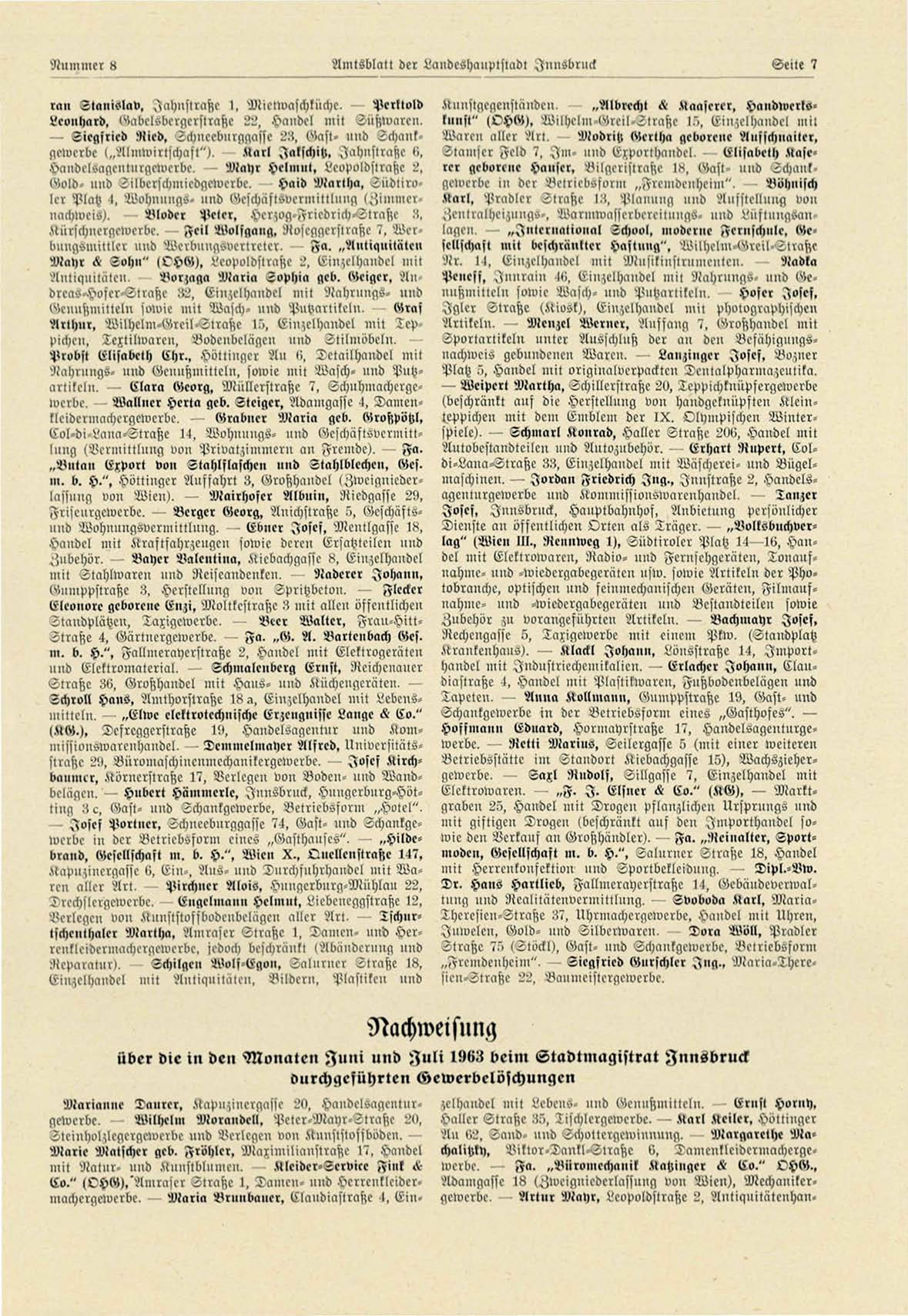Autobestandteilen und Antoznbehör. — Erhalt Rupert, Eoldi-Lana-Straße 8A, Einzelhandel »lit Wäscherei- nnd Bügelmaschinen. — Jordan Friedrich Ing., Innstraße 2, Handelsagentnrgewerbe und Kommissioiiswarcllhandel. — Tanzer