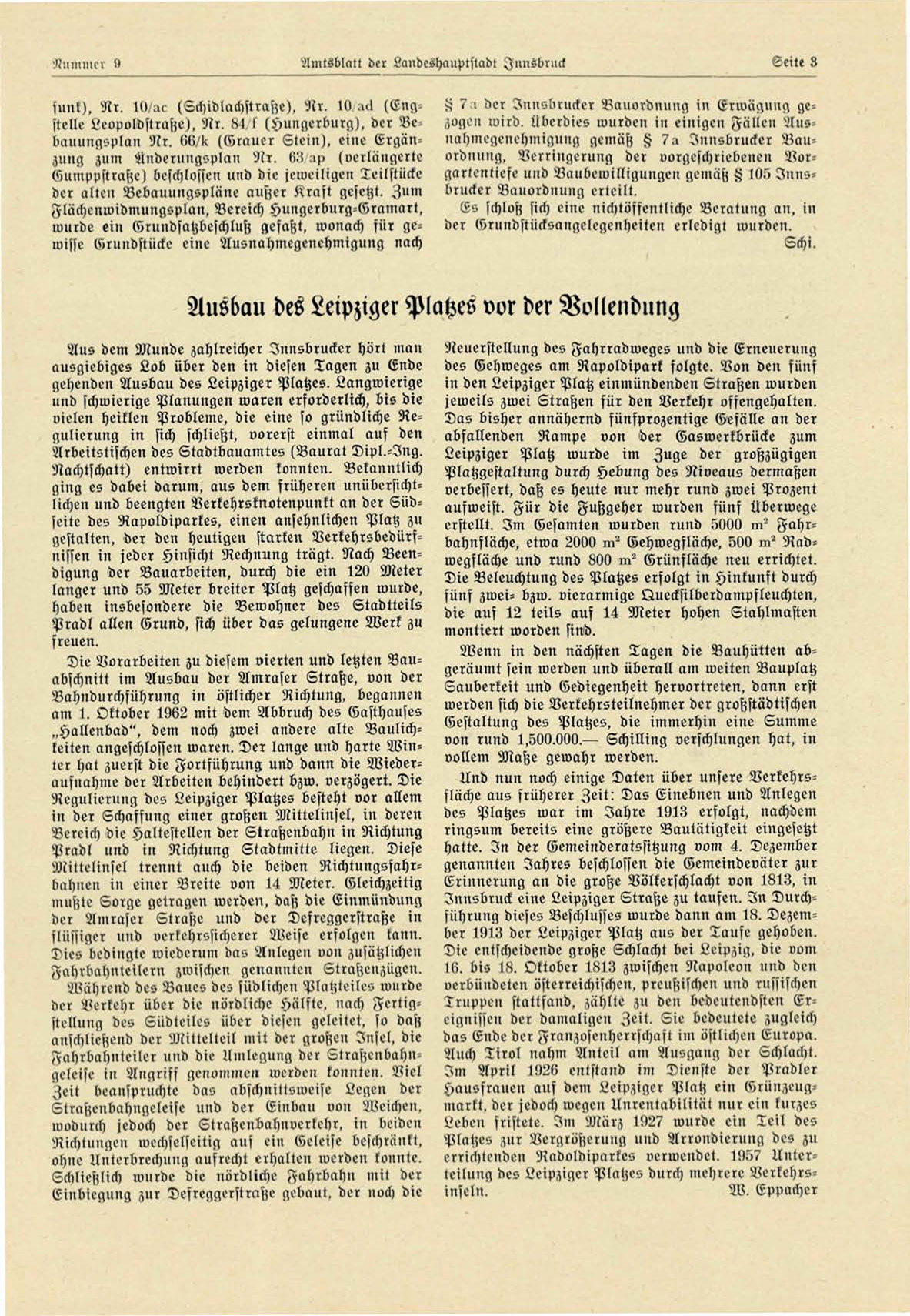 Innsbruck eine Leipziger Straße zu taufen. I n Durchführung dieses Beschlusses wurde dann am 18. Dezember 1913 der Leipziger Platz ans der Taufe gehoben.