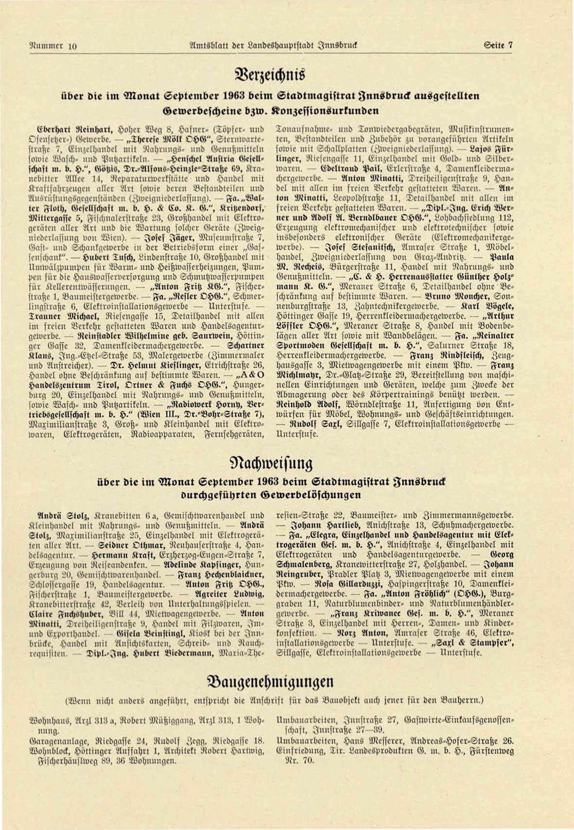 über die im Monat September 1963 beim Stadtmagistrat Innsbruck