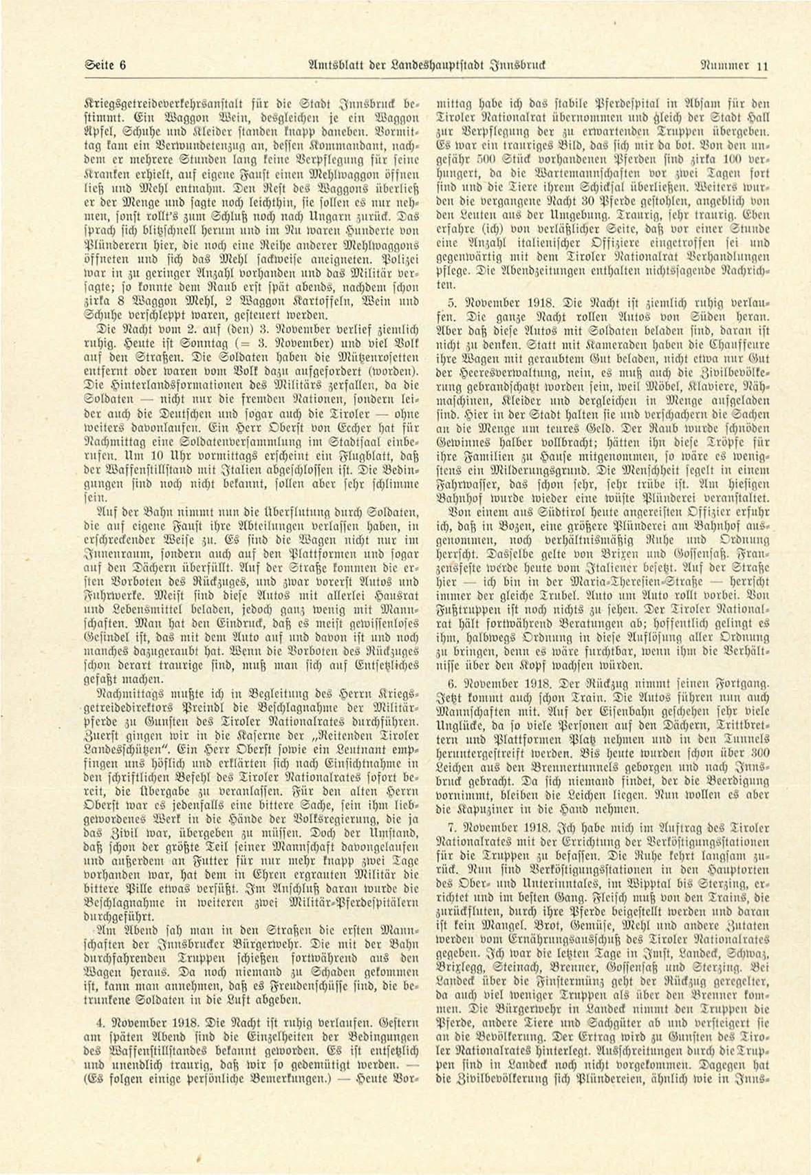 7. November 1918. Ich habe mich im Auftrag des Tiroler