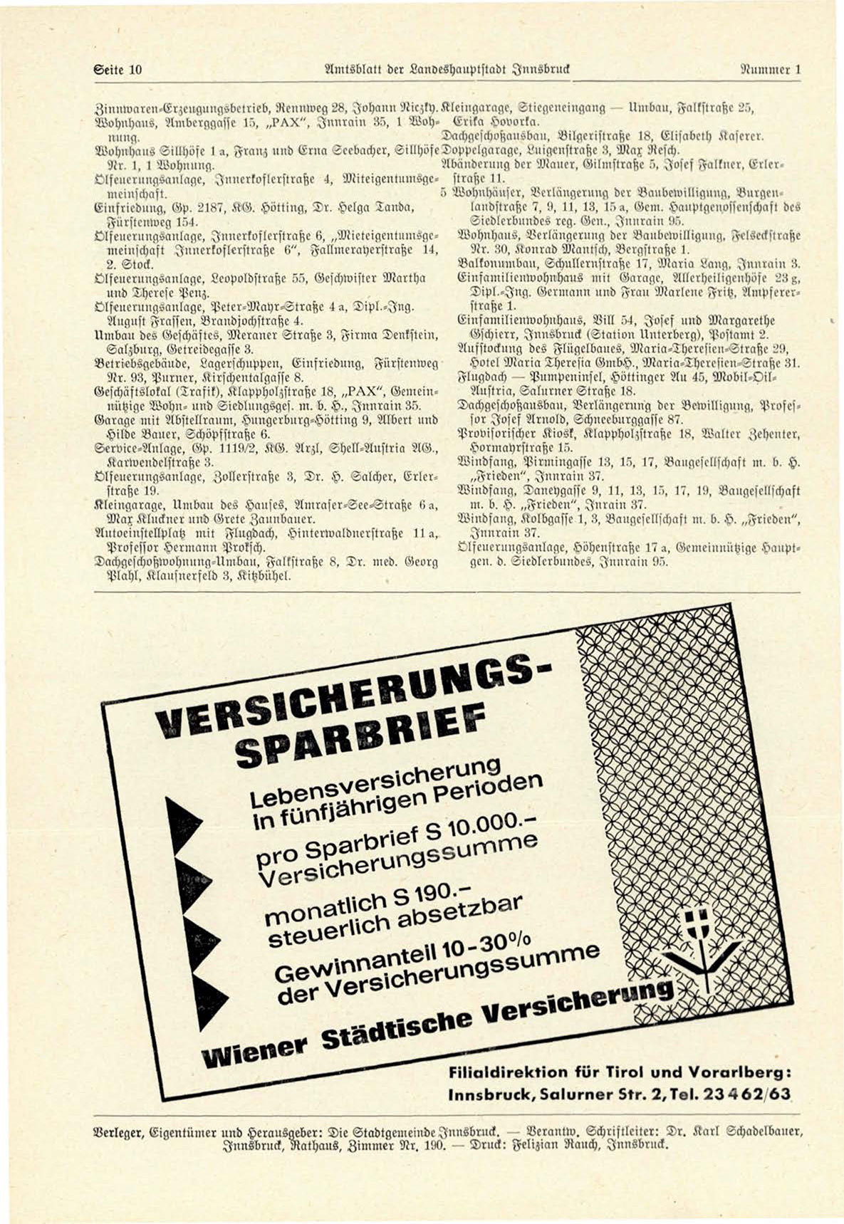 Verleger, Eigentümer nnd Hcransgeber: Die Stadtgcmeindc Innsbruck.