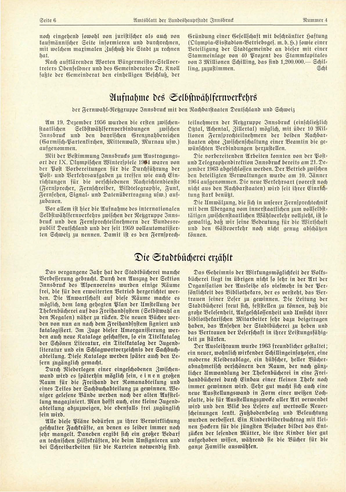 Selbstwählfernverkehrs zwischen der Netzgruppe I n n s bruck und den Fernsprechteilnehmern der Bundesrepublik Deutschland und der seit 1959 Vollautomatisierten Schweiz zu nennen. Damit ist es den Fernsprech-