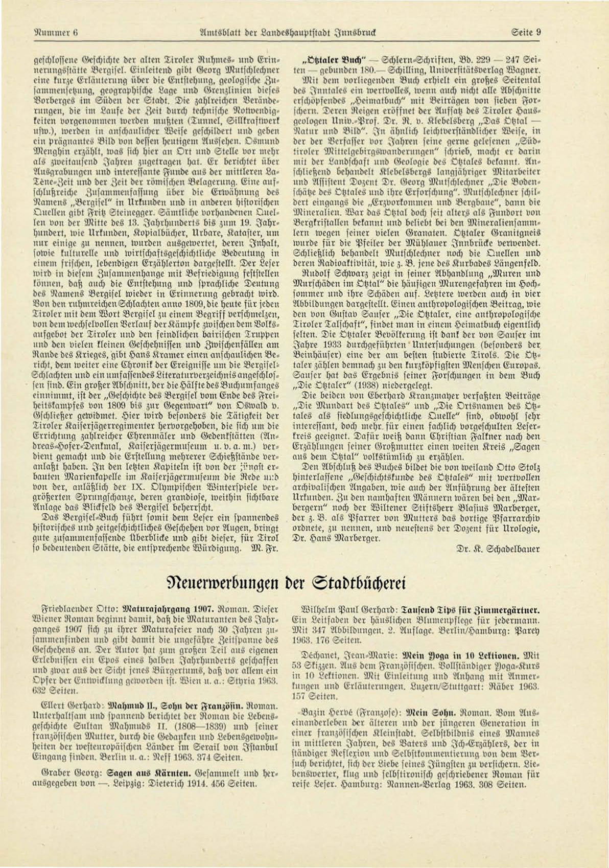 Errichtung zahlreicher Ehrenmäler und Gedenkstätten (Andrcas-Hofer-Denkmal, Kaiscri.ägcrmnsenm n, v. a. m,) verdient geniacht nnd die Erstellnng mehrerer Schießstände veranlaßt haben. I n den letzten Kapiteln ist von der -s"nast erbauten Maricnkapelle im Htaiserjägcrmuseum die Rede m:d