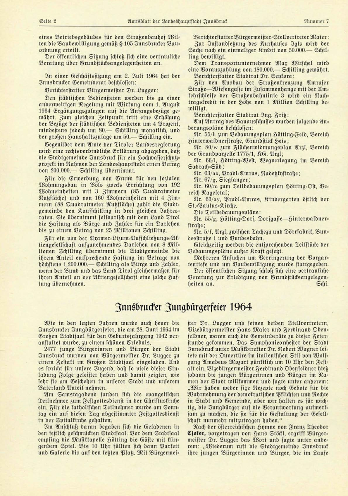 Innsbrucker Iungbürgerfeier, die am 28. J u n i 1964 im