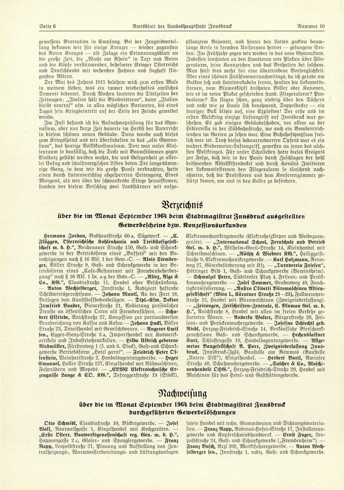 über die im Monat September 1964 beim Stadtmagistrat Innsbruck ausgestellten