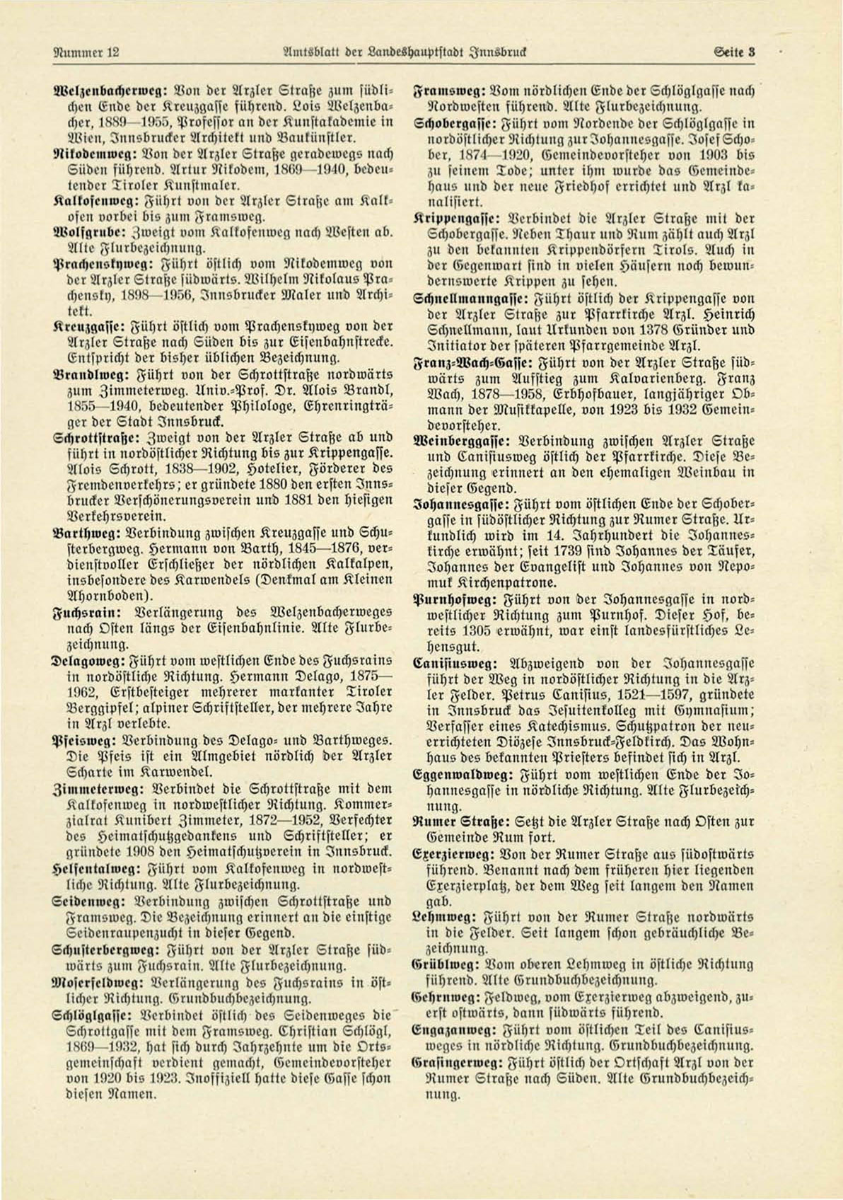 Franz-Wlach-ltzasse: Führt von der Arzler Straße südwärts zum Aufstieg zum Kaluarienberg. Franz