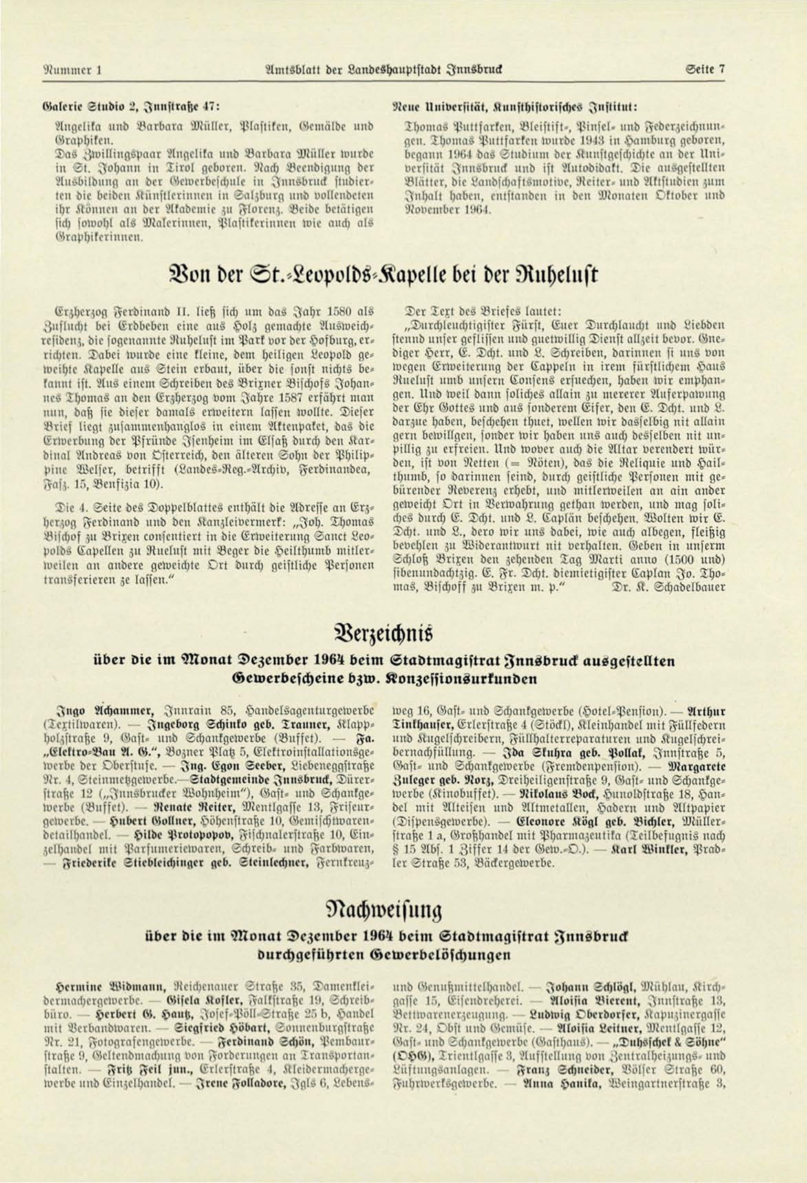 über die im Monat Dezember 1964 beim Stadtmagistrat Innsbruck ausgestellten
