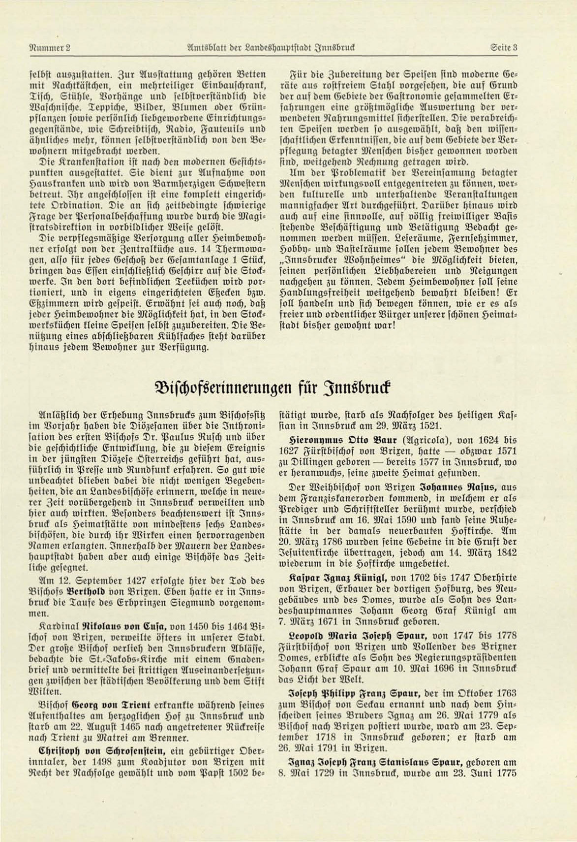 hier auch wirkten. Besonders beachtenswert ist Innsbruck als Heimatstätte von mindestens sechs Landesbischöfen, die durch ihr Wirken einen hervorragenden
