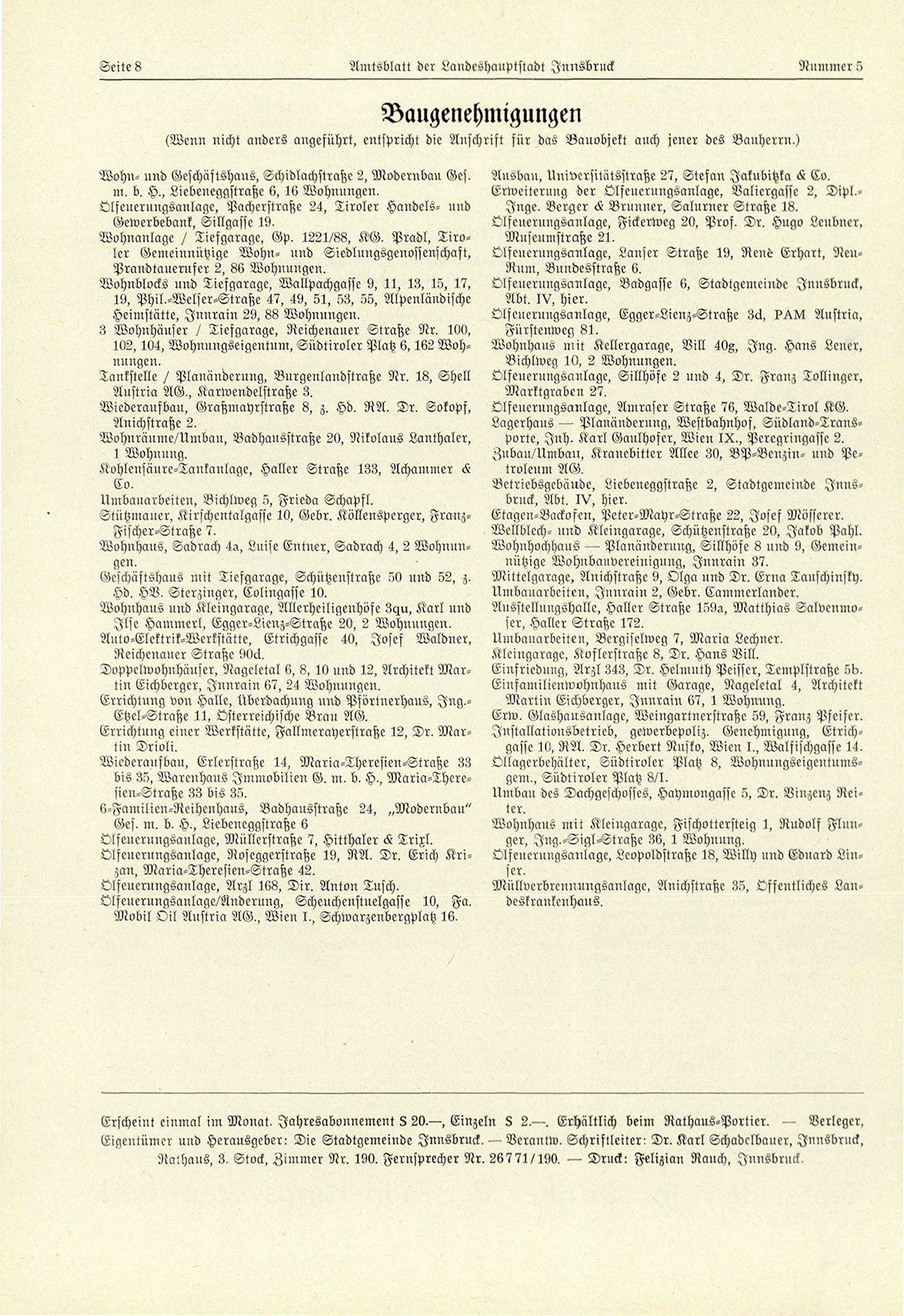 Eigentümer nnd Herausgeber: Die Stadtgemeinde Innsbruck. — Vcrcmtw. Schriftleiter: Dr. Karl Schadclbaner, Innsbruck,