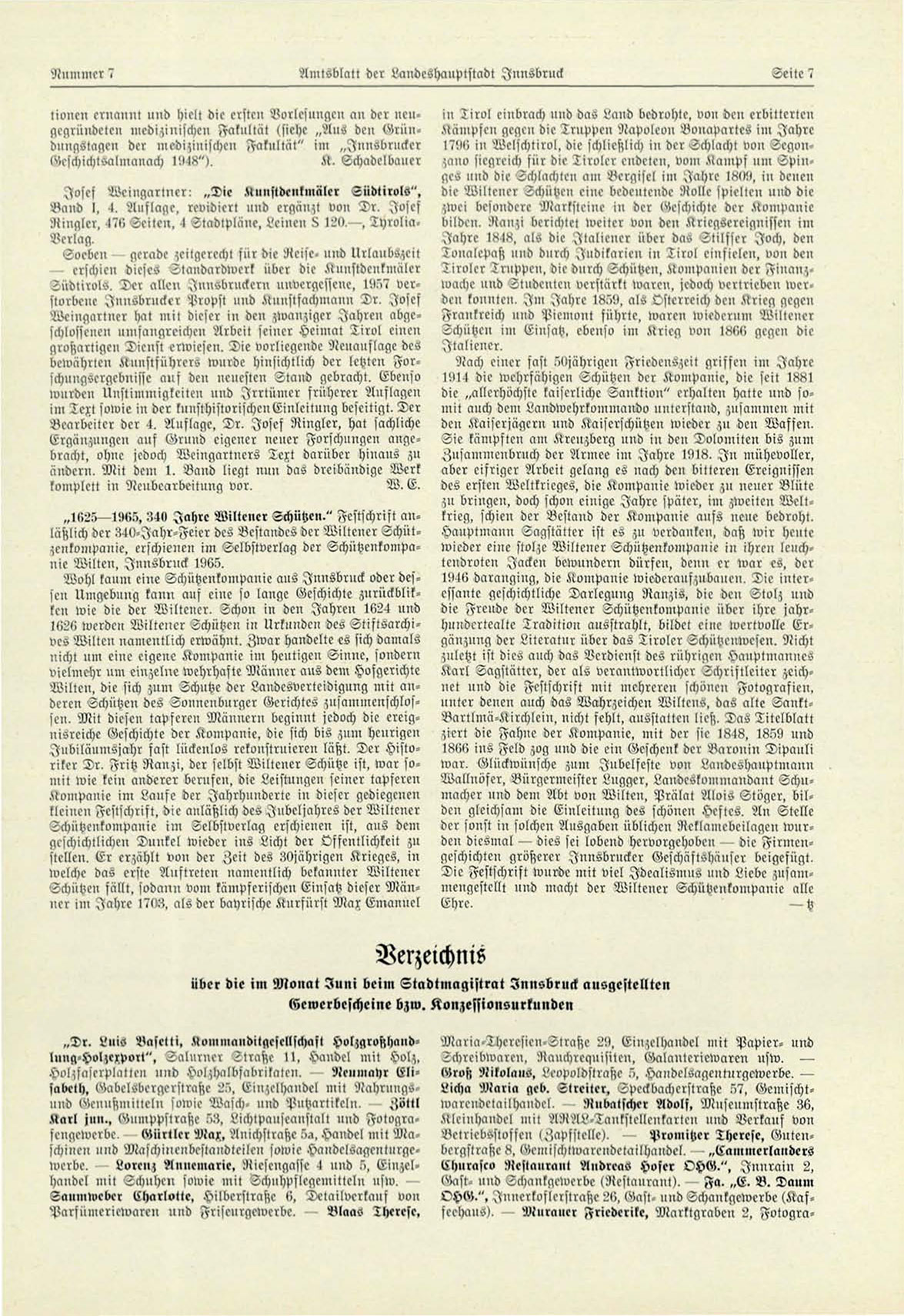 über die im Mount Juni beim Stndtmna.istrat Innsbruck ausgestellten
