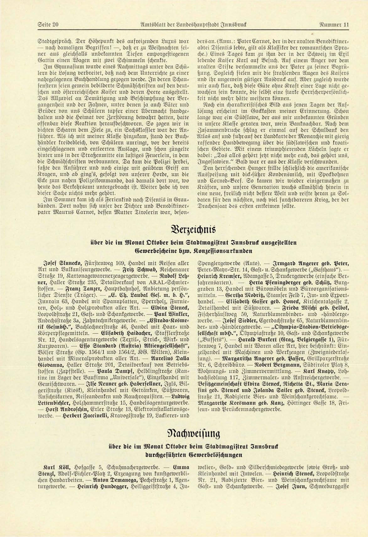über die im Monat Oktober beim Etadtmagistrat Innsbruck ausgestellten