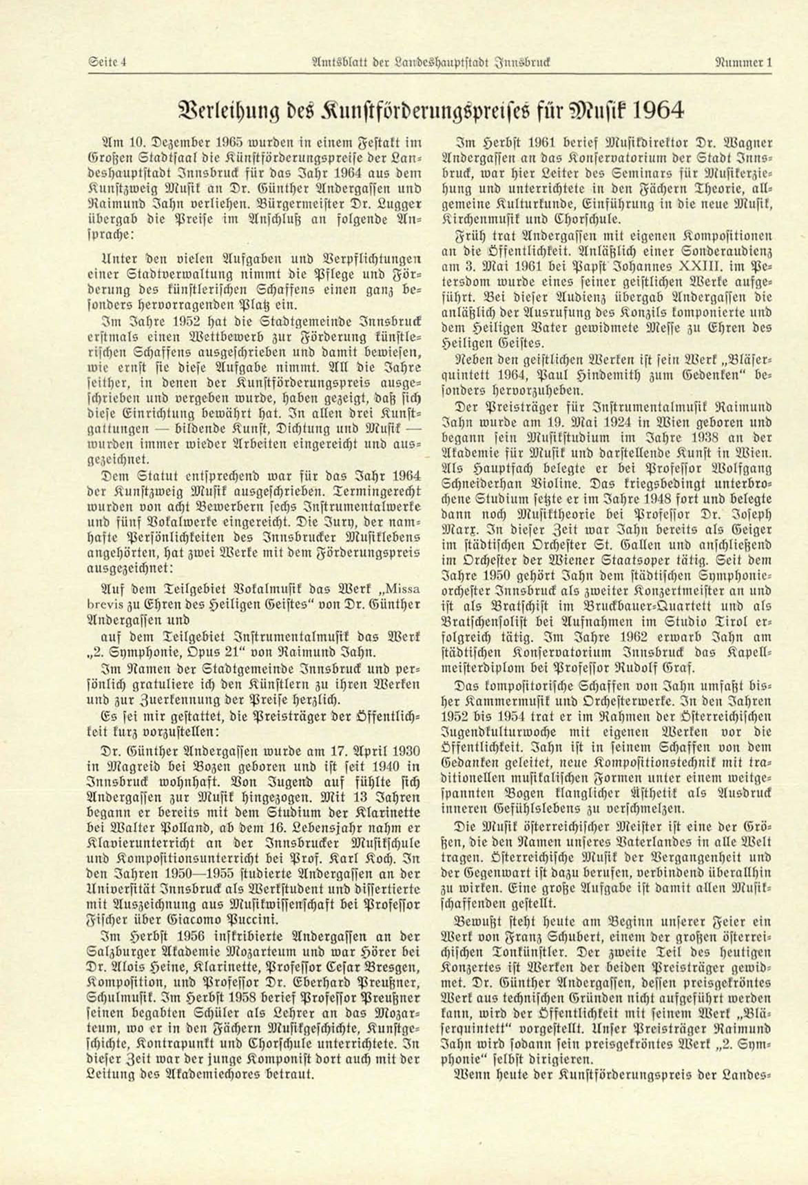 Kroßen Stadtsaal die Künstförderungspreise der Landeshauptstadt Innsbruck für das Jahr 1964 aus dem