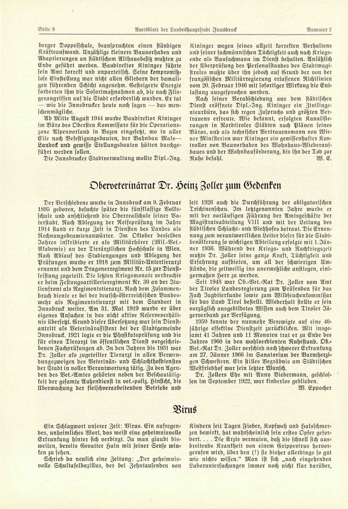 Jahres I960 in den wohlverdienten Ruhestand. Ob.Vet.-Nat Dr. Zoller verschied nach schwerer Erkrankung