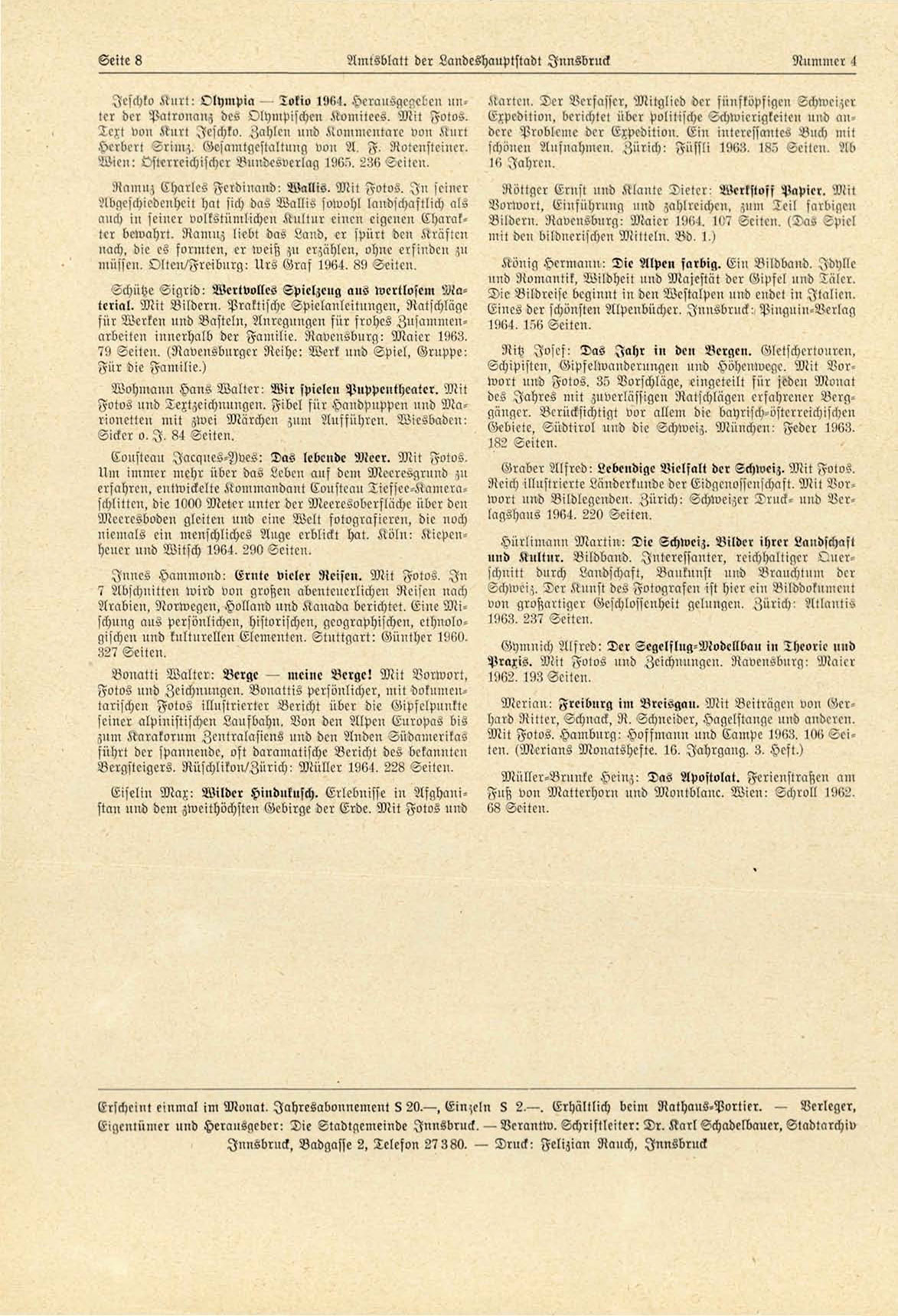 nnd Herausgeber: Die Etadtgcmeindc Innsbruck. - Verautw. Schriftleiter: D r . Karl Echadelbaucr. Stadtarchiv