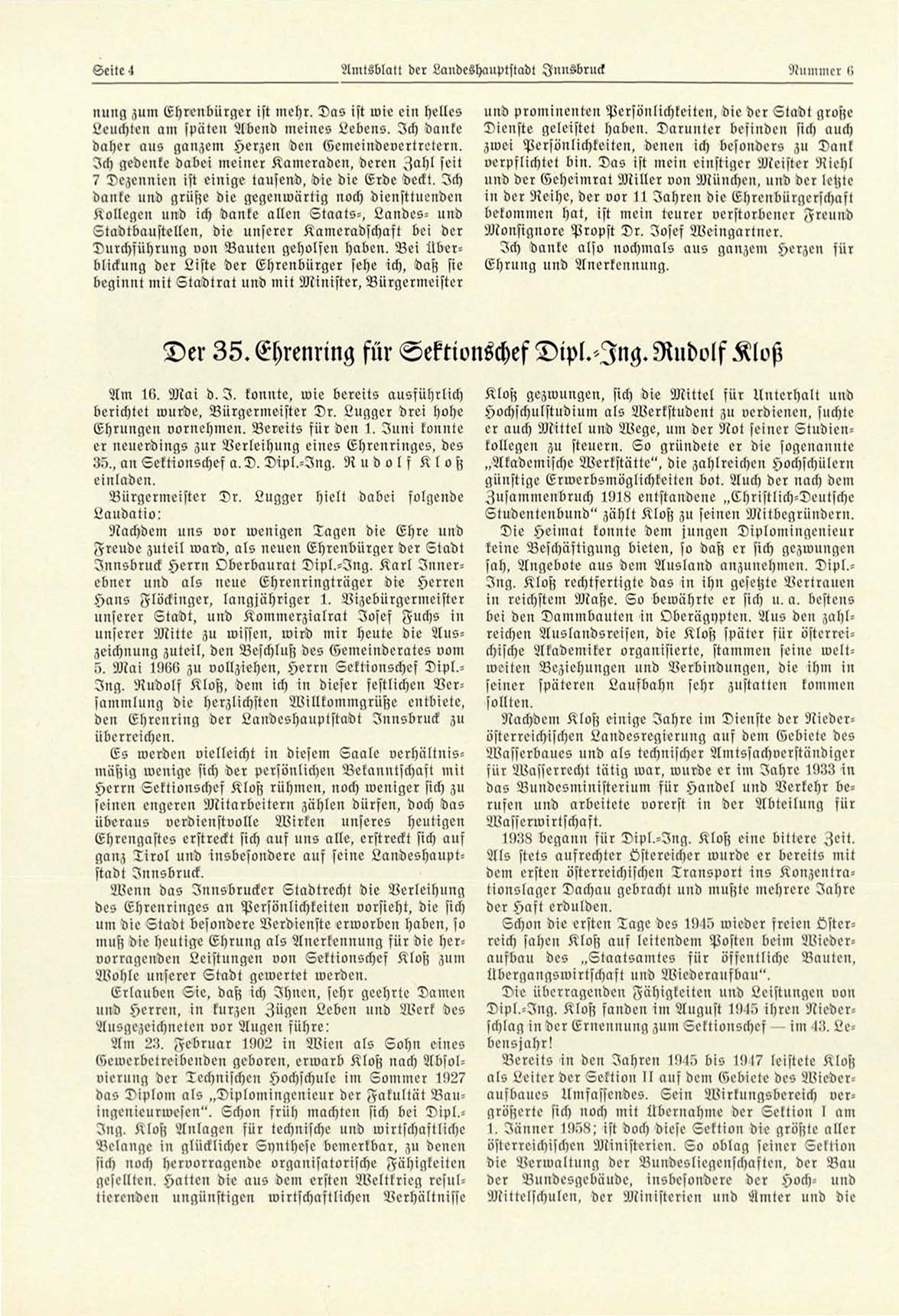 5. M a i 1966 zu vollziehen, Herrn Sektionschef Dipl.I n g . Rudolf Kloß, dem ich in dieser festlichen Versammlung die herzlichsten Willkommgrüße entbiete,