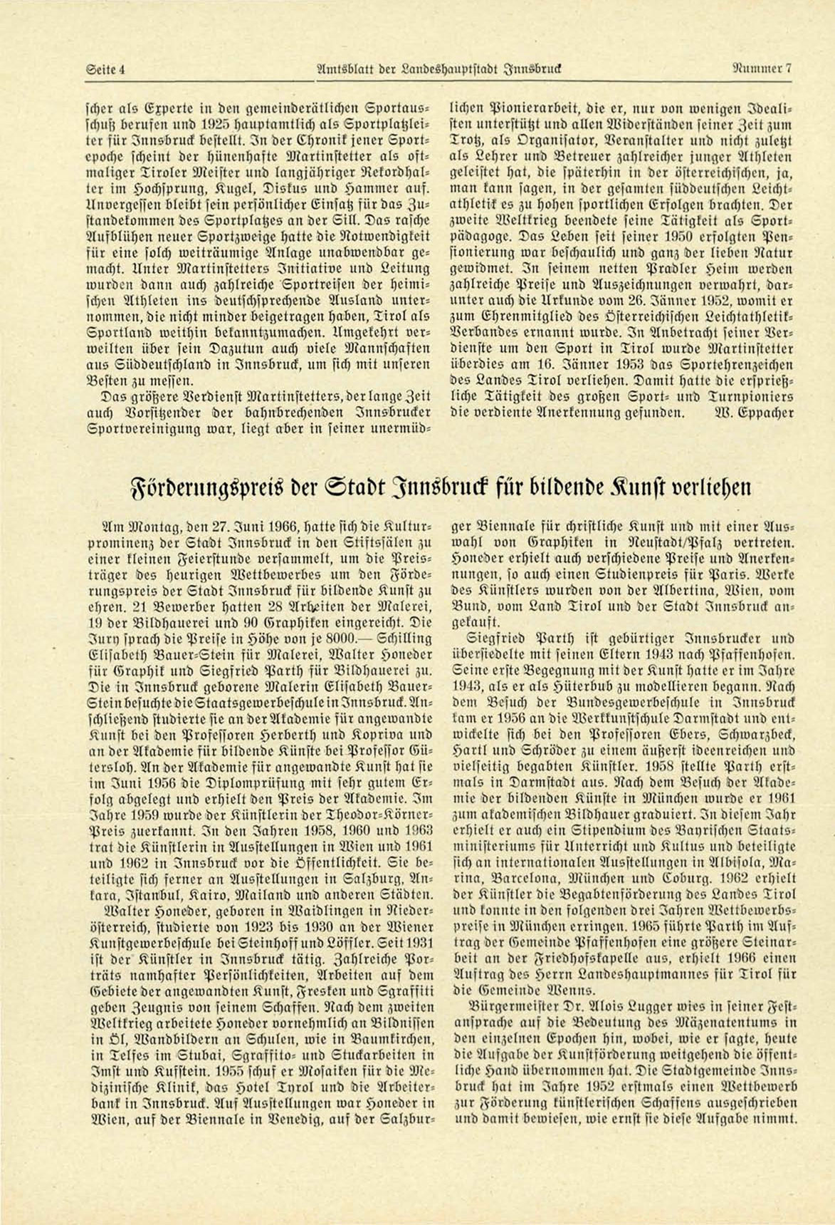 zum Ehrenmitglied des Österreichischen LeichtathletikVerbandes ernannt wurde. I n Anbetracht seiner Verdienste um den Sport in T i r o l wurde Martinstetler