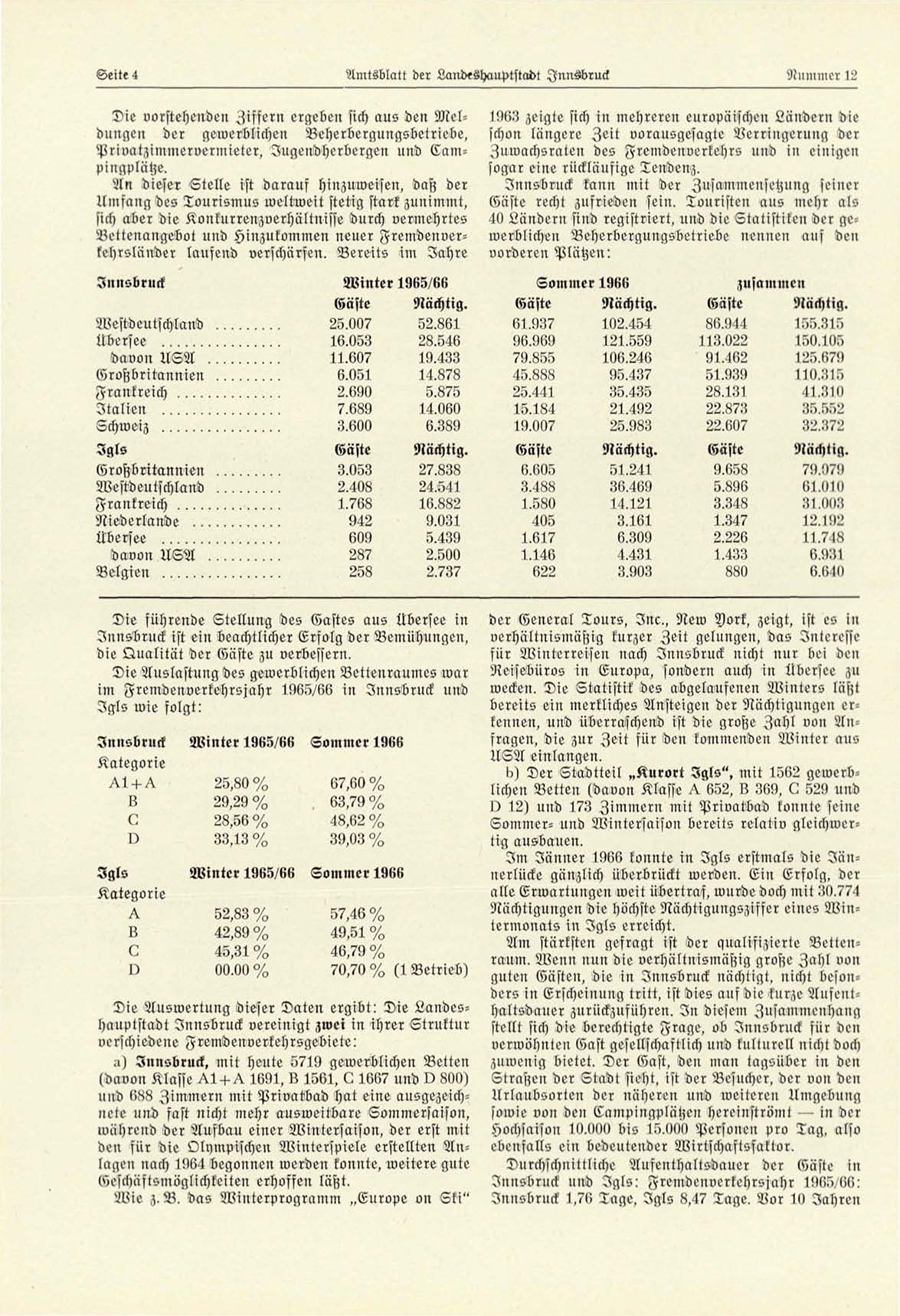 im Fremdenverkehrsjahr 1965/66 in Innsbruck und