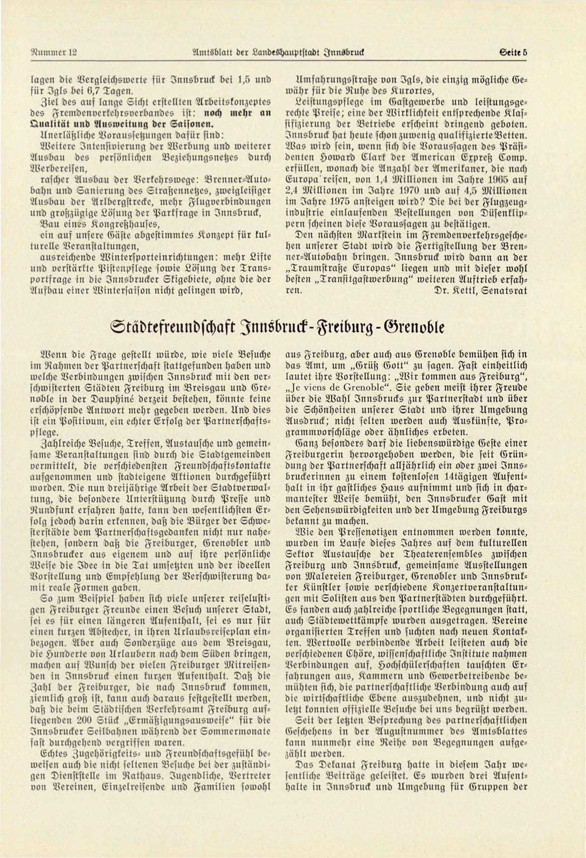welche Verbindungen zwischen Innsbruck mit den verschwisterten Städten Freiburg im Vreisgau und Grenoble in der Dauphinä derzeit bestehen, könnte keine