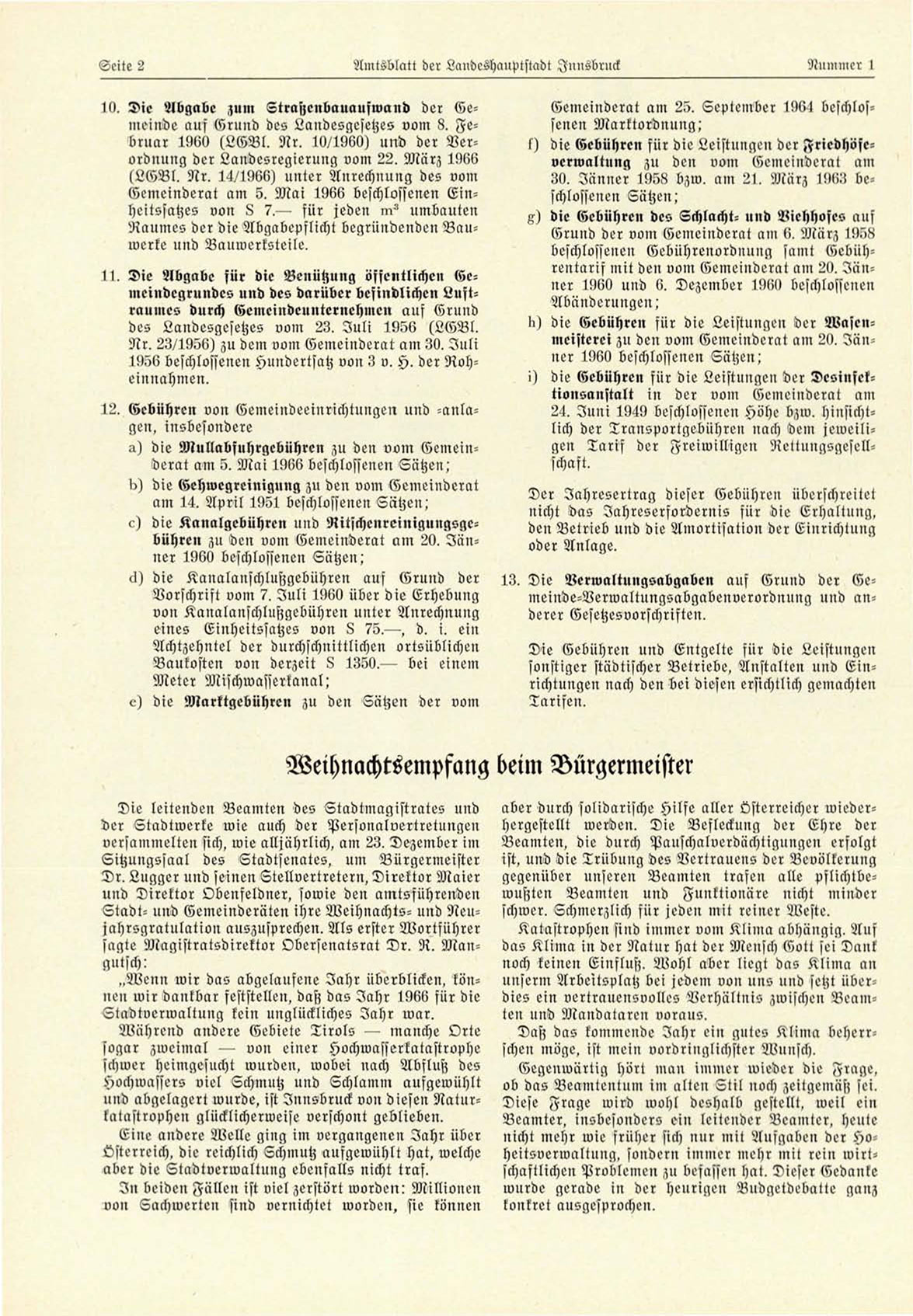 „Wenn w i r das abgelaufene Jahr überblicken, können wir dantbar feststellen, daß das Jahr 1966 für die