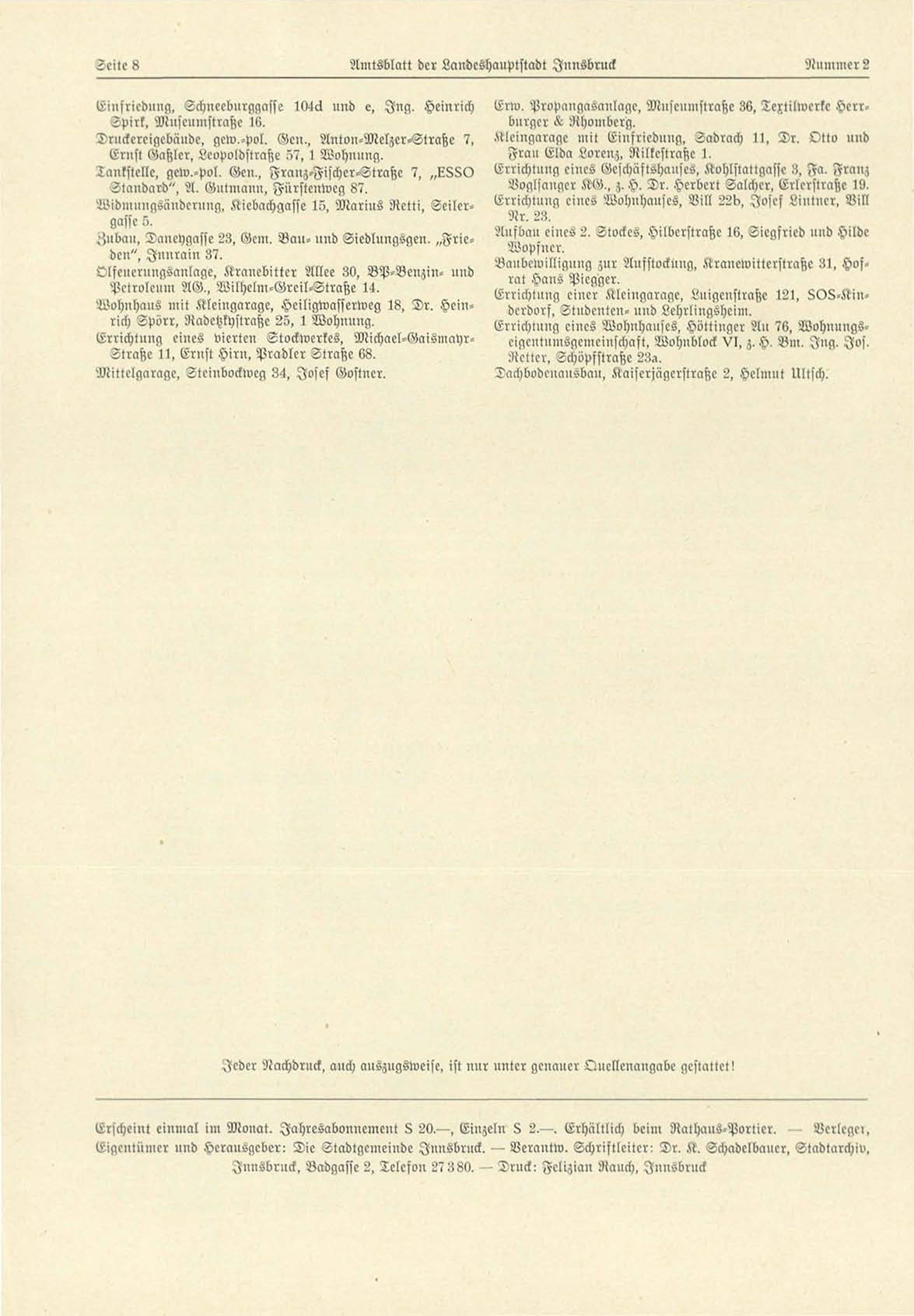 Eigcnlümer uud Herausgeber: Die Stadtgemeiude Innsbruck. — Verautw. Schriftleiter: Dr. K. Schadelbaucr, Stadtarchiv,