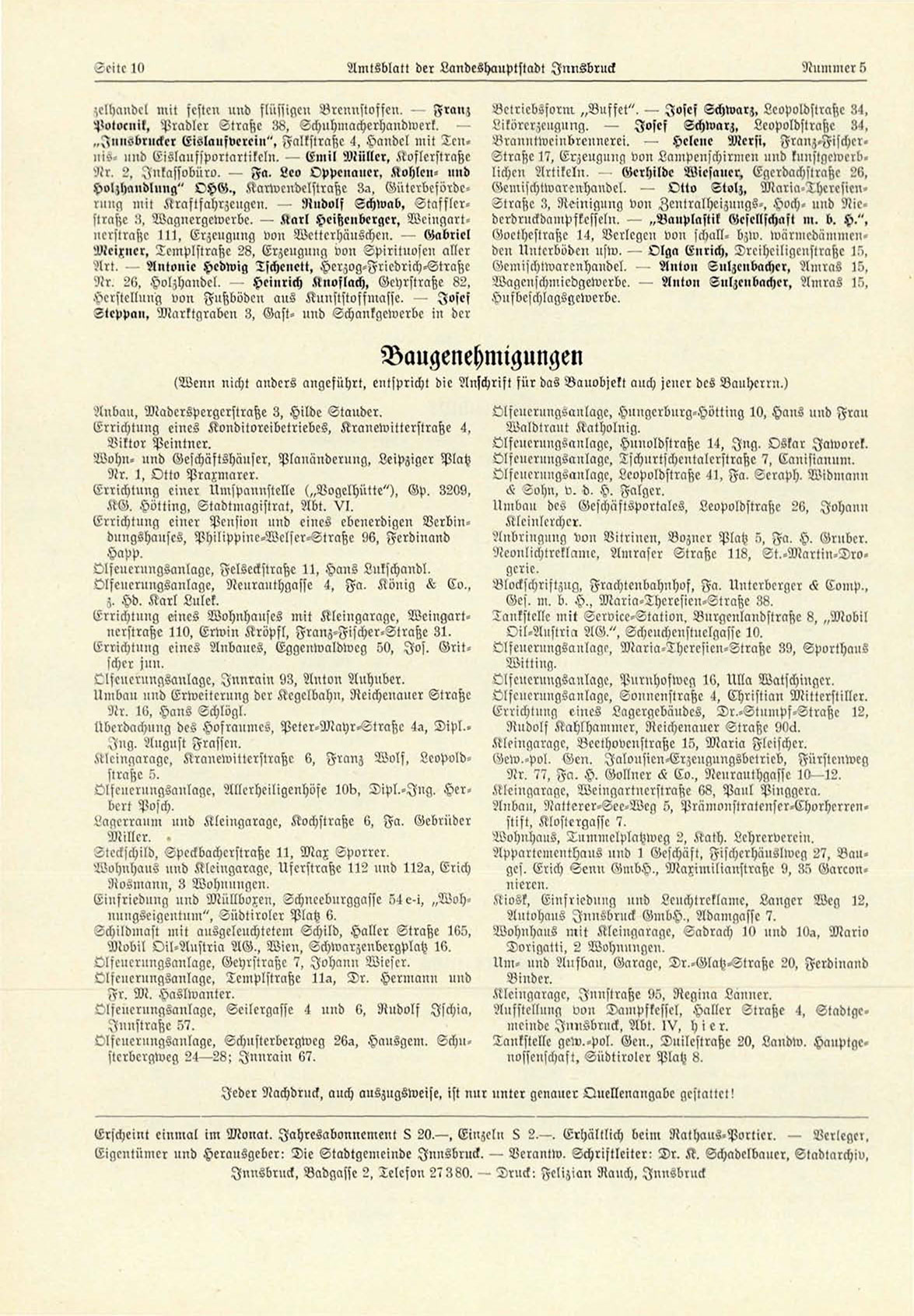 Eigentümer und Herausgeber: Die Stadtgemeinde Innsbruck. — Verantw. Schriftleiter! Dr. K. Schadelbauer. Stadtarchiv.