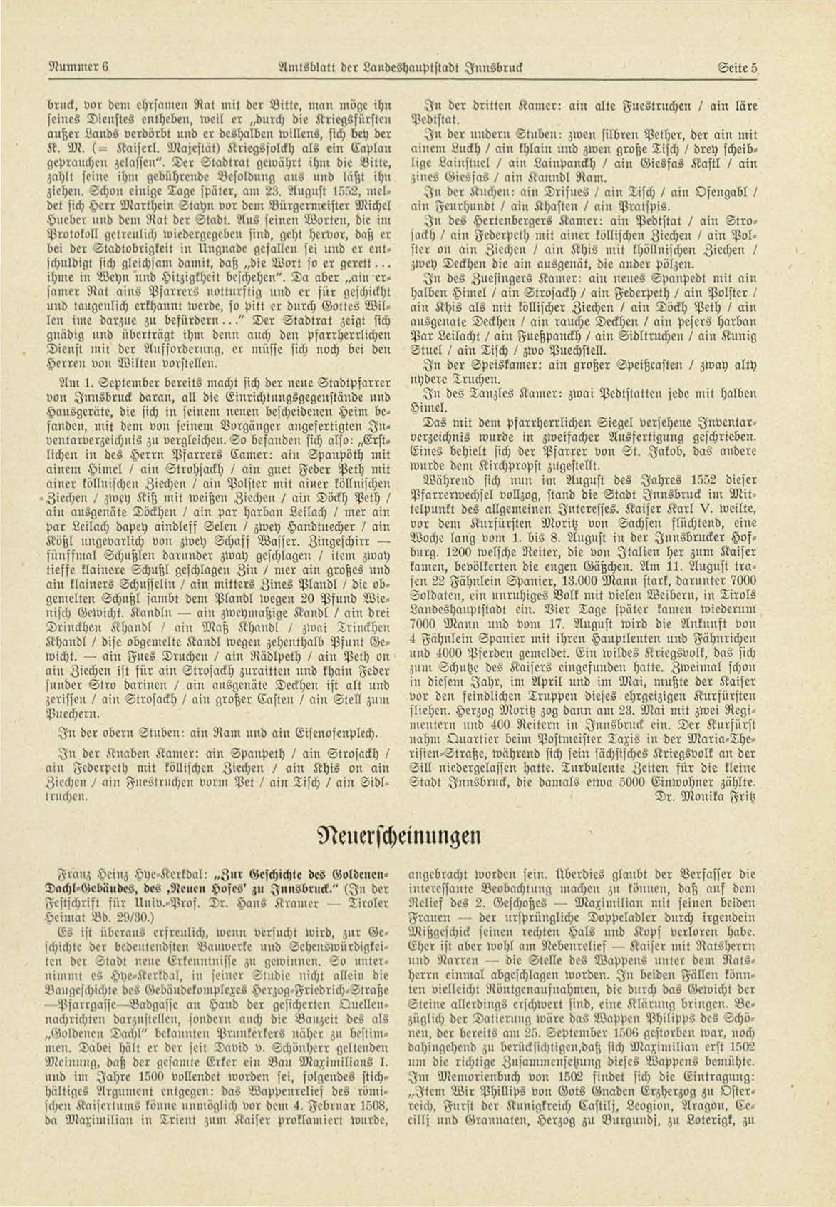 Pfarrcrwechsel vollzog, stand die Stadt Innsbruck im M i t telpunkt des allgemeinen Interesses. Kaiser K a r l V. weilte,