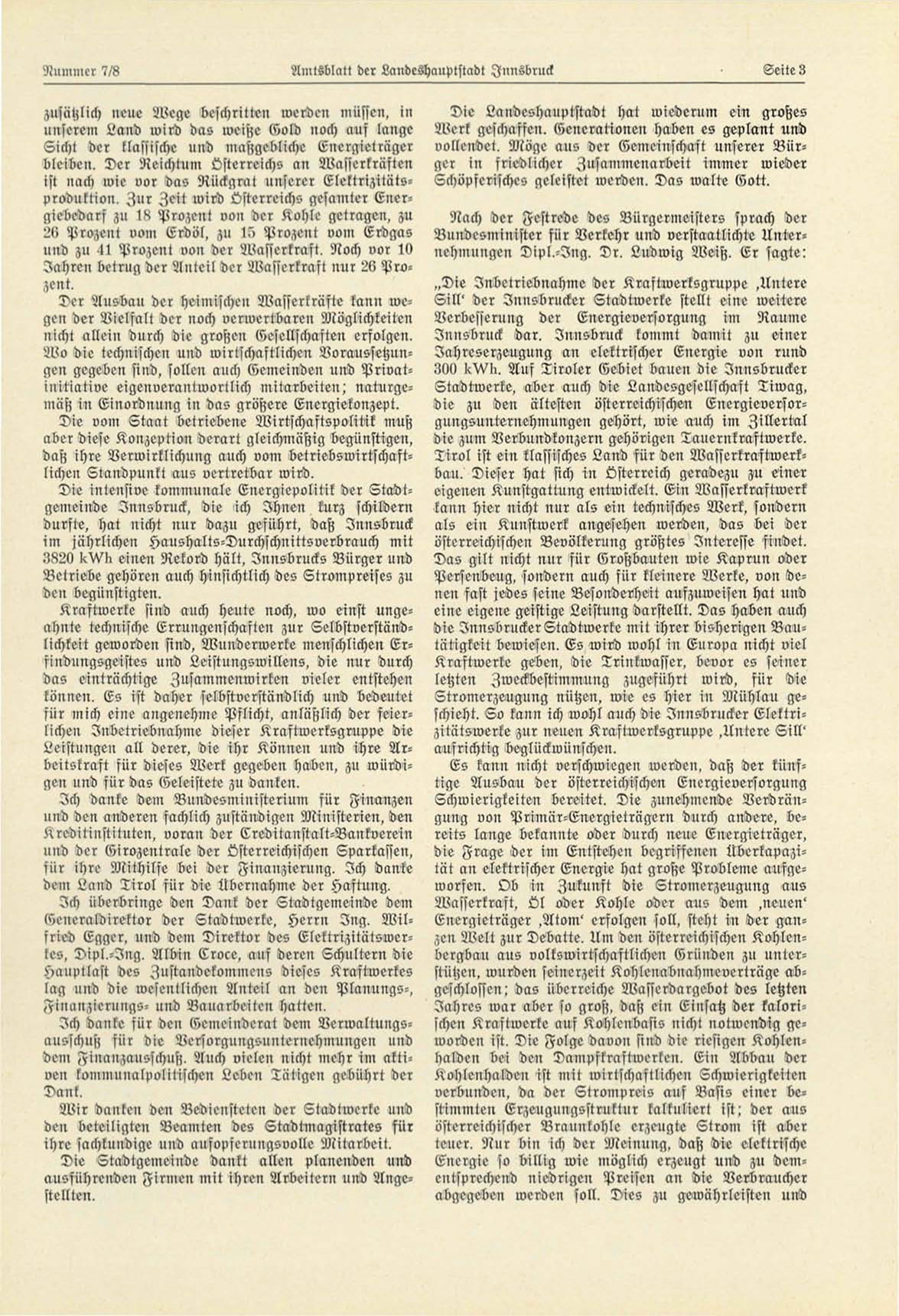 Stromerzeugung nützen, wie es hier in Mühlau geschieht. So kann ich wohl auch die Innsbrucker Elektrizitätswerke zur neuen Kraftwerksgruppe ,Untere Sill"