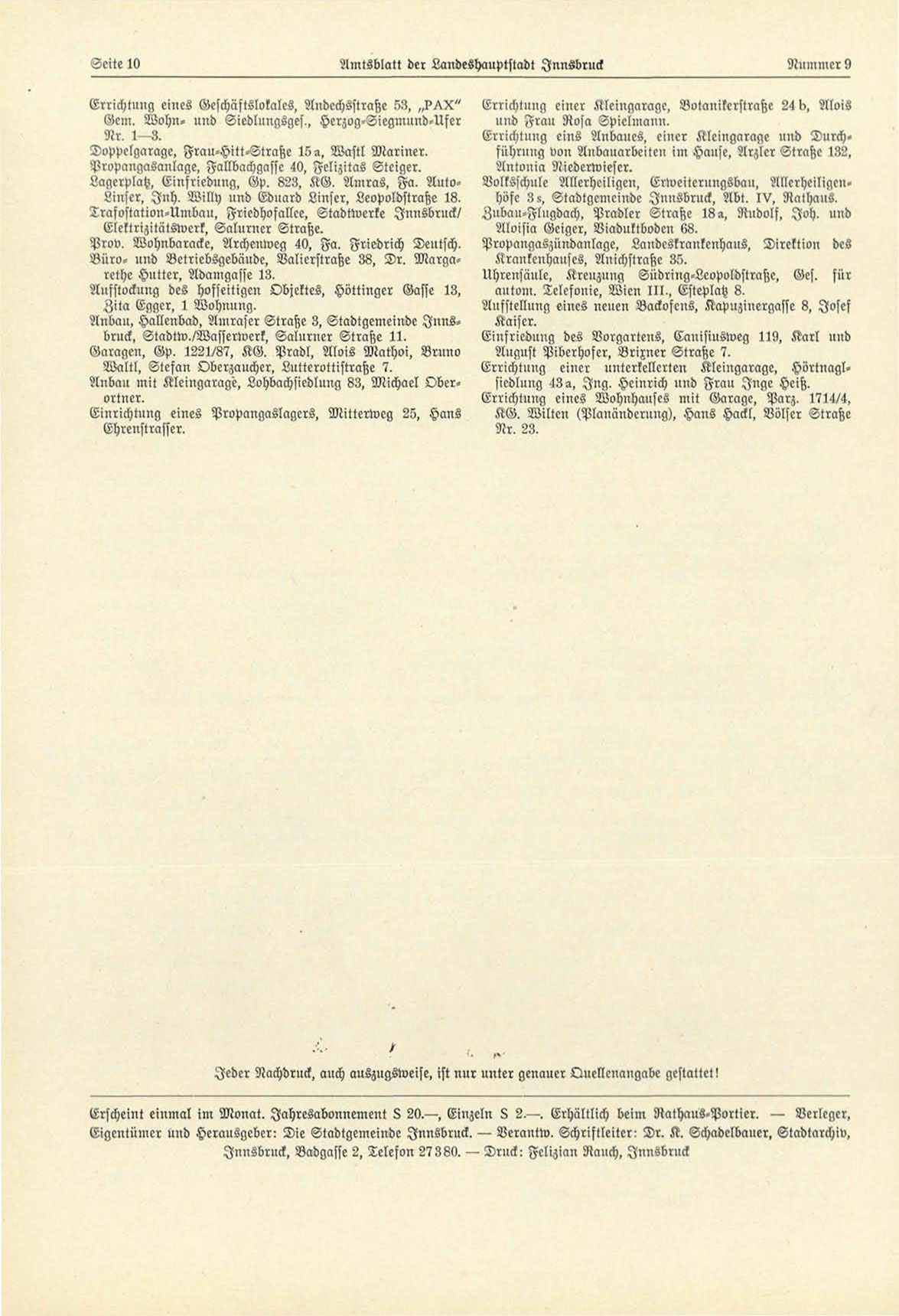 Eigentümer uud Herausgeber: Die Stadtgemeinde Innsbruck. — Verantw. Schriftleiter! Dr. K. Schadelbaner. Stadtarchiv,