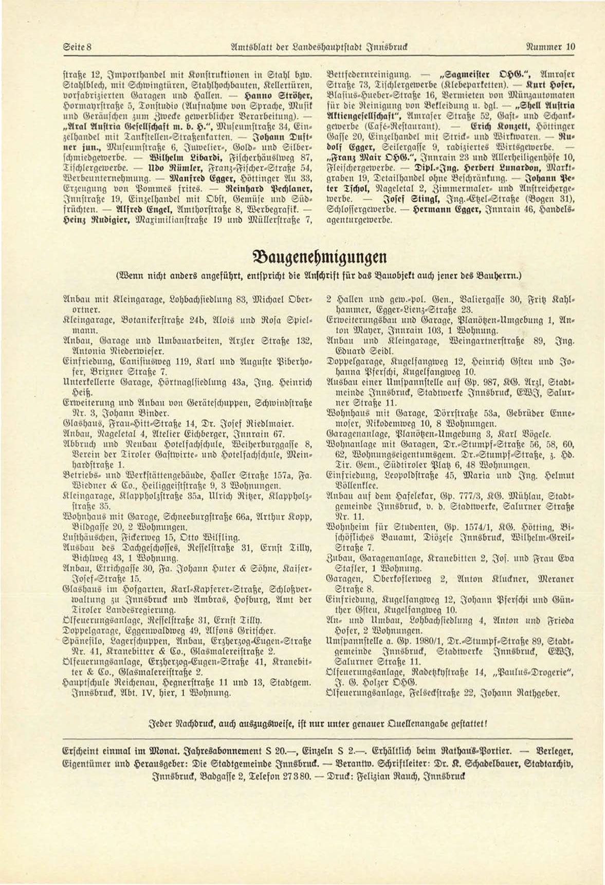 Eigentümer und Herausgeber: Die Stadtgemeinde Innsbruck. — Verantw. Schriftleiter: Dr. K. Schadelbauer, Stadtarchiv,