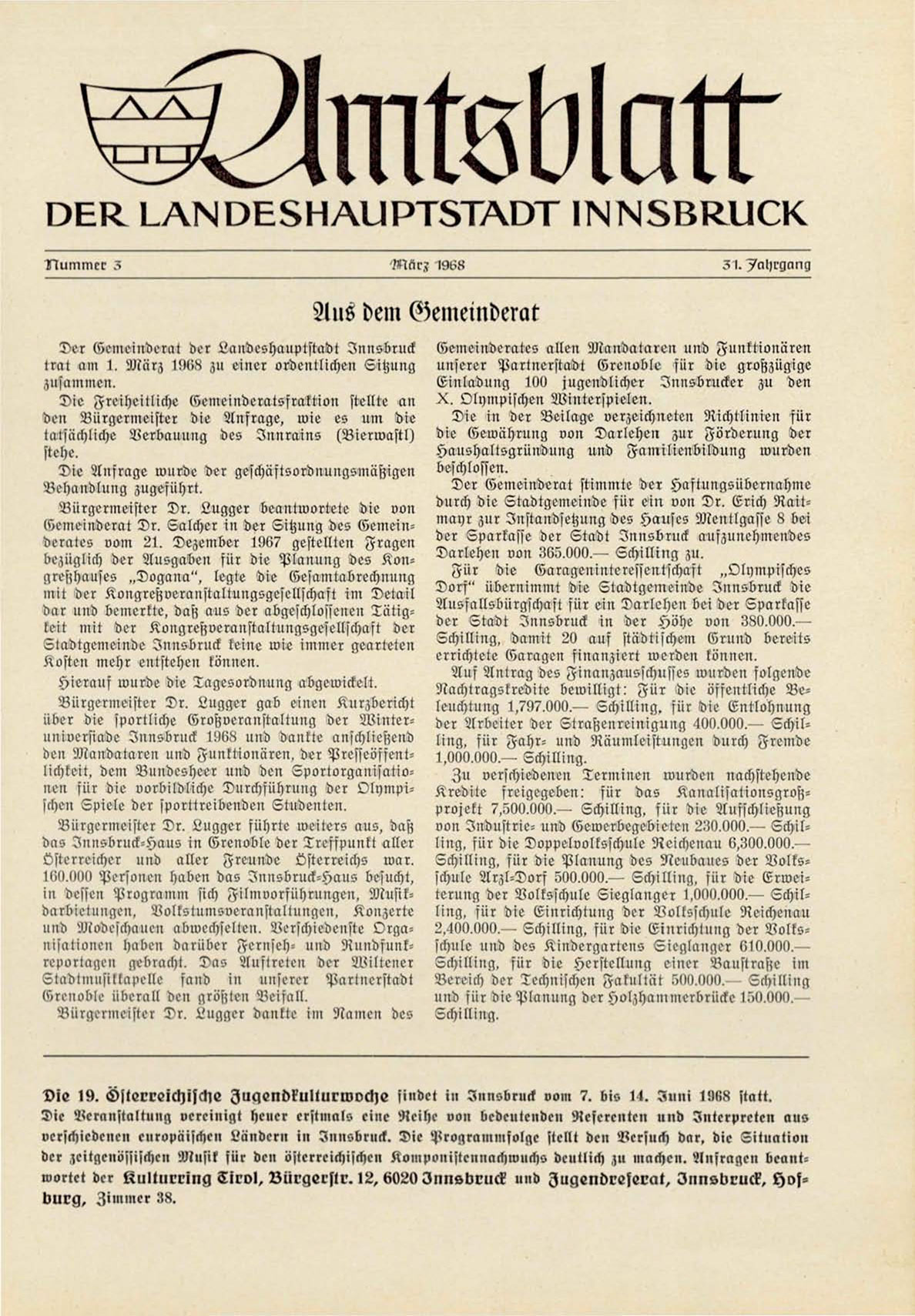über die sportliche Großveranstaltung der Winteruni versi ade Innsbruck 1968 und dankte anschließend
