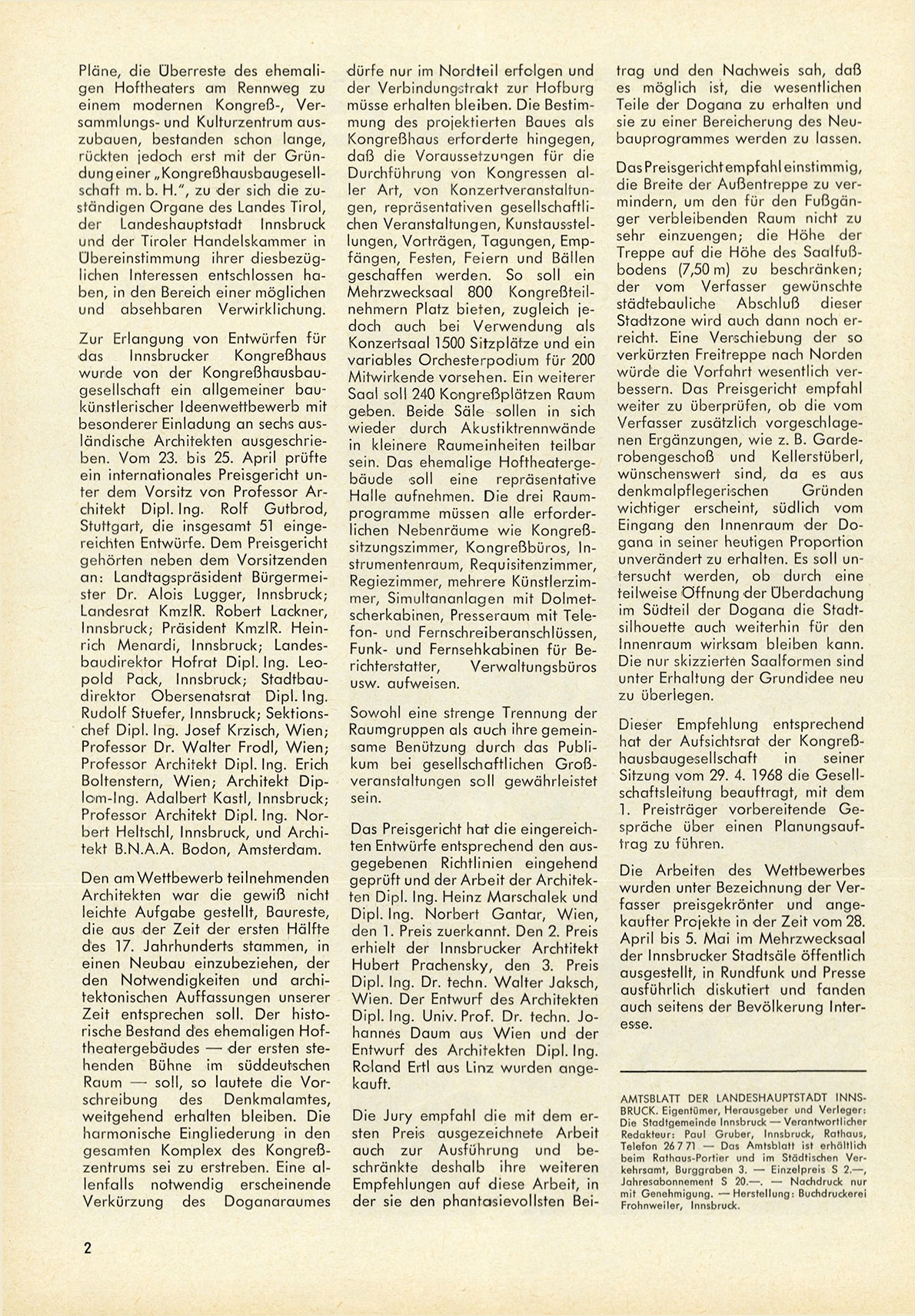 rückten jedoch erst mit der G r ü n dungeiner „Kongreßhausbaugesellschaft m. b. H . " zu der sich die z u ständigen O r g a n e des Landes T i r o l ,