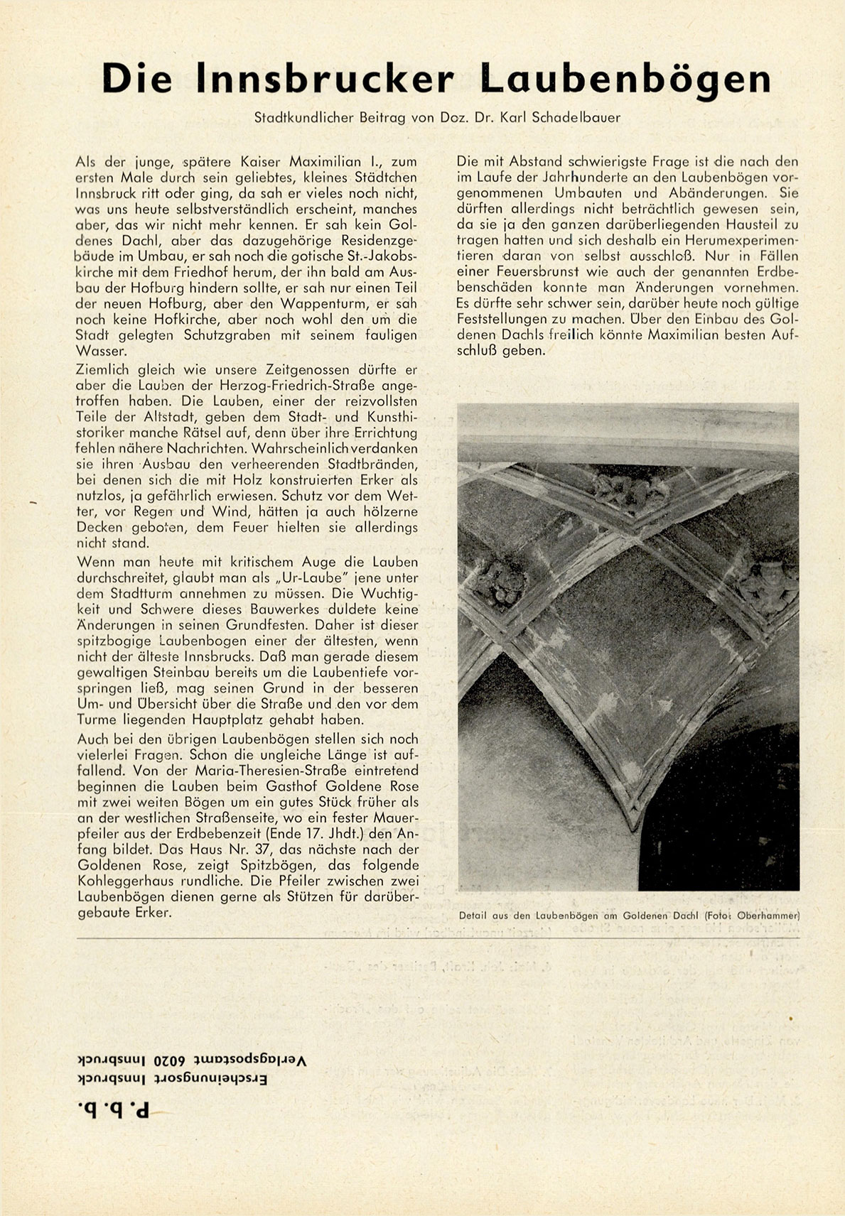 Stadtkundlicher Beitrag von D o z . Dr. Karl S c h a d e l b a u e r