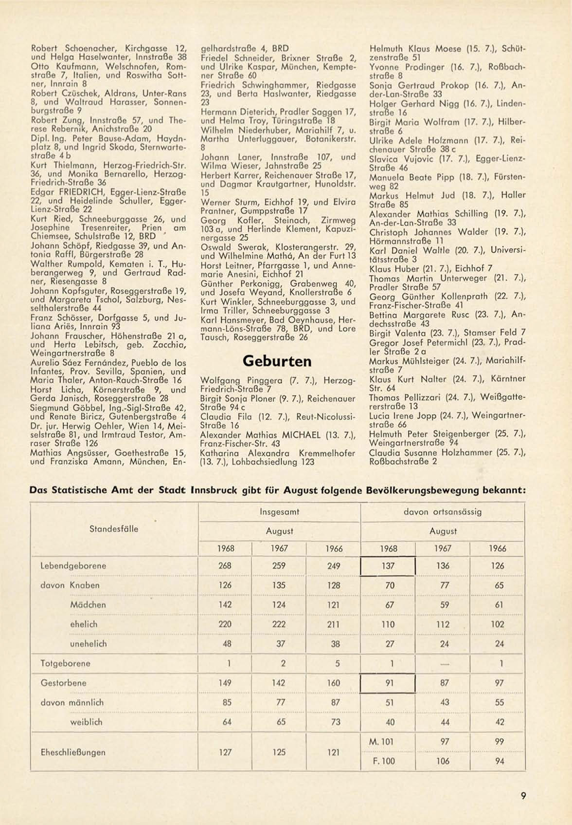 Das Statistische Amt der Stadt Innsbruck gibt für August folgende Bevölkerungsbewegung bekannt: