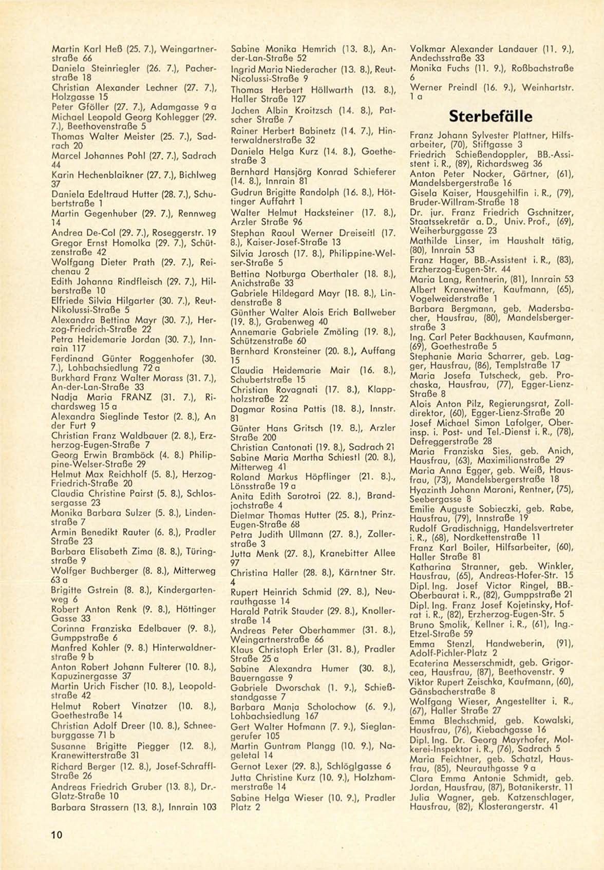 D a n i e l a E d e l t r a u d Hutter (28. 7.), S c h u bertstraße 1