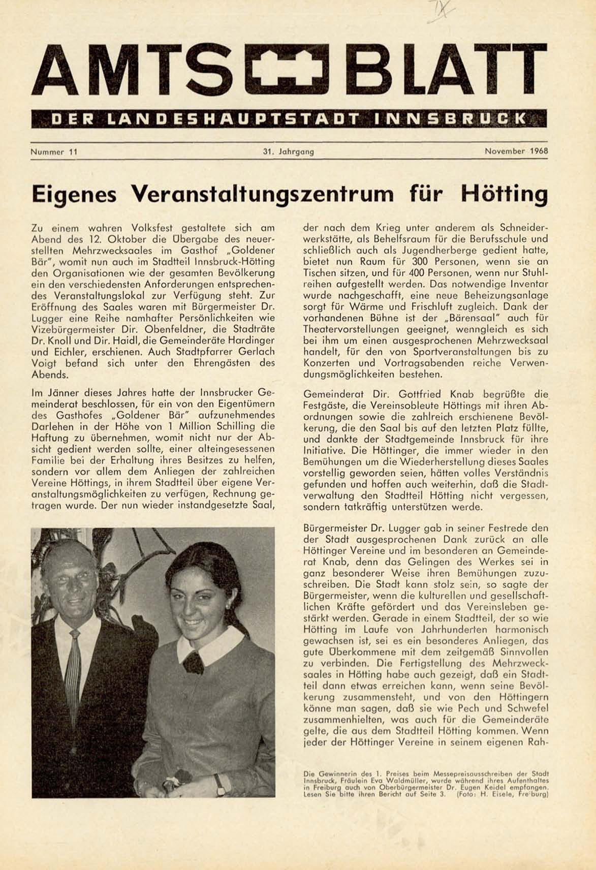 zu v e r b i n d e n . D i e Fertigstellung des M e h r z w e c k saales in Hötting h a b e a u c h gezeigt, d a ß ein Stadtteil d a n n etwas e r r e i c h e n k a n n , w e n n seine Bevölkerung zusammensteht, und v o n den H ö t t i n g e r n