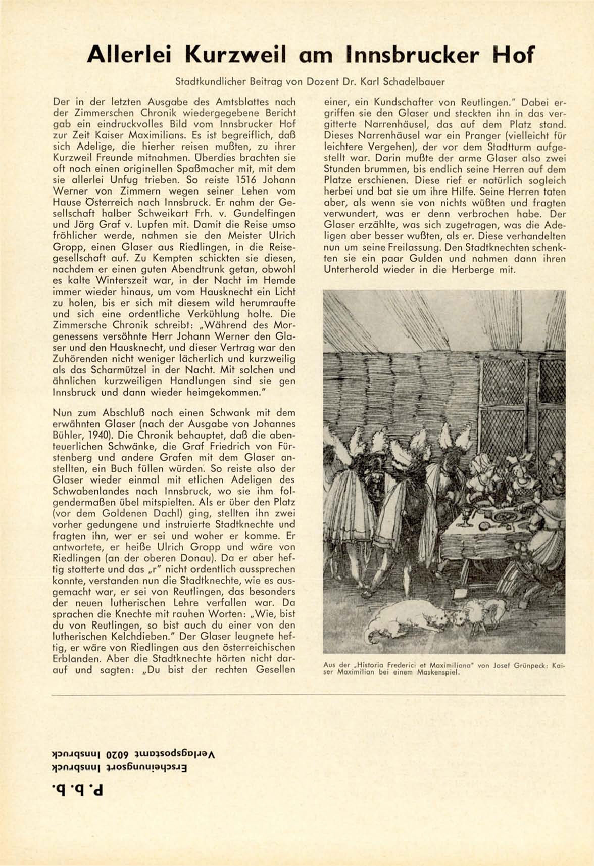 S c h w a b e n l a n d e s nach Innsbruck, w o sie ihm f o l g e n d e r m a ß e n übel mitspielten. A l s er über den Platz